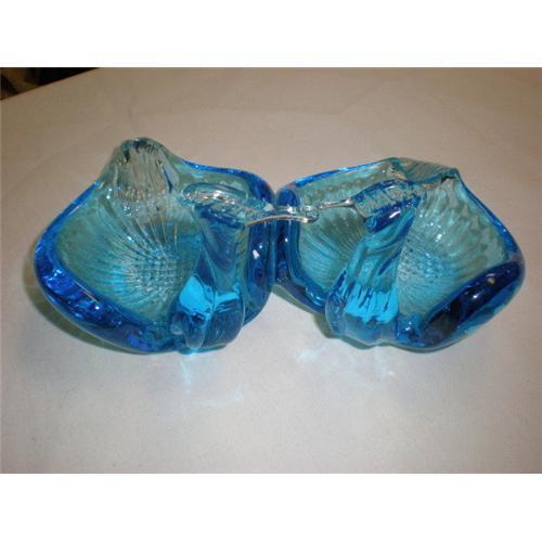 Kissing Swans Blown Glass Dish/Ashtray. This is a beautiful clear to blue blown glass kissing swan dish or ashtray. Great Gift item as Holidays soon</em></td>