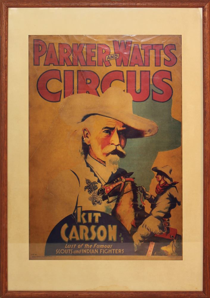 Original vintage poster, Kit Carson "Scout and Indian Fighter". Framed and Matted, image measuring 15 1/2"x 23 1/2".