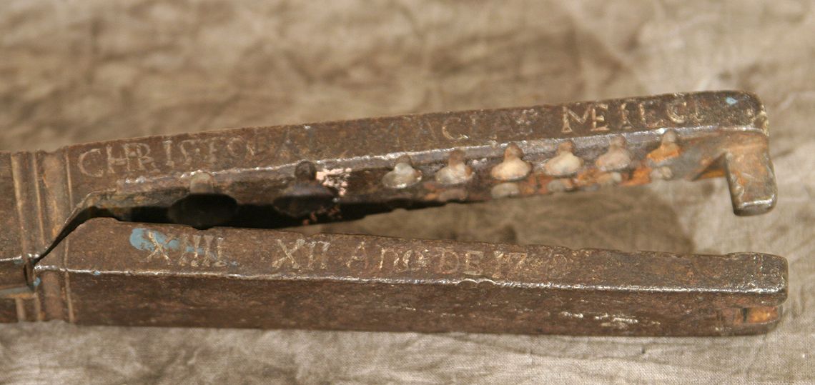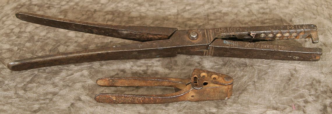 Two Antique Bullet Molds Owned By Kit Carson. 1. Mexican gang mold. 18" long with fourteen bullet molds. Marked on the edge CHRISTOBAL MACIA MESEC. 2. Single cavity bullet mold. 7 ½" long. Both 19th century. (est. $1,000-2,000). Provenance: "Kit" Carson (1809-1868), by descent to his son "Kit" Carson II (1858-1929), by sale to Ralph Meyers (1885-1948), by descent to his wife Rowena Meyers Martinez (1909-2000), by descent to her son Ouray Meyers (b. 1941). CONDITION REPORTS: www.auctioninsantafe.com/docs/cr2012.pdf