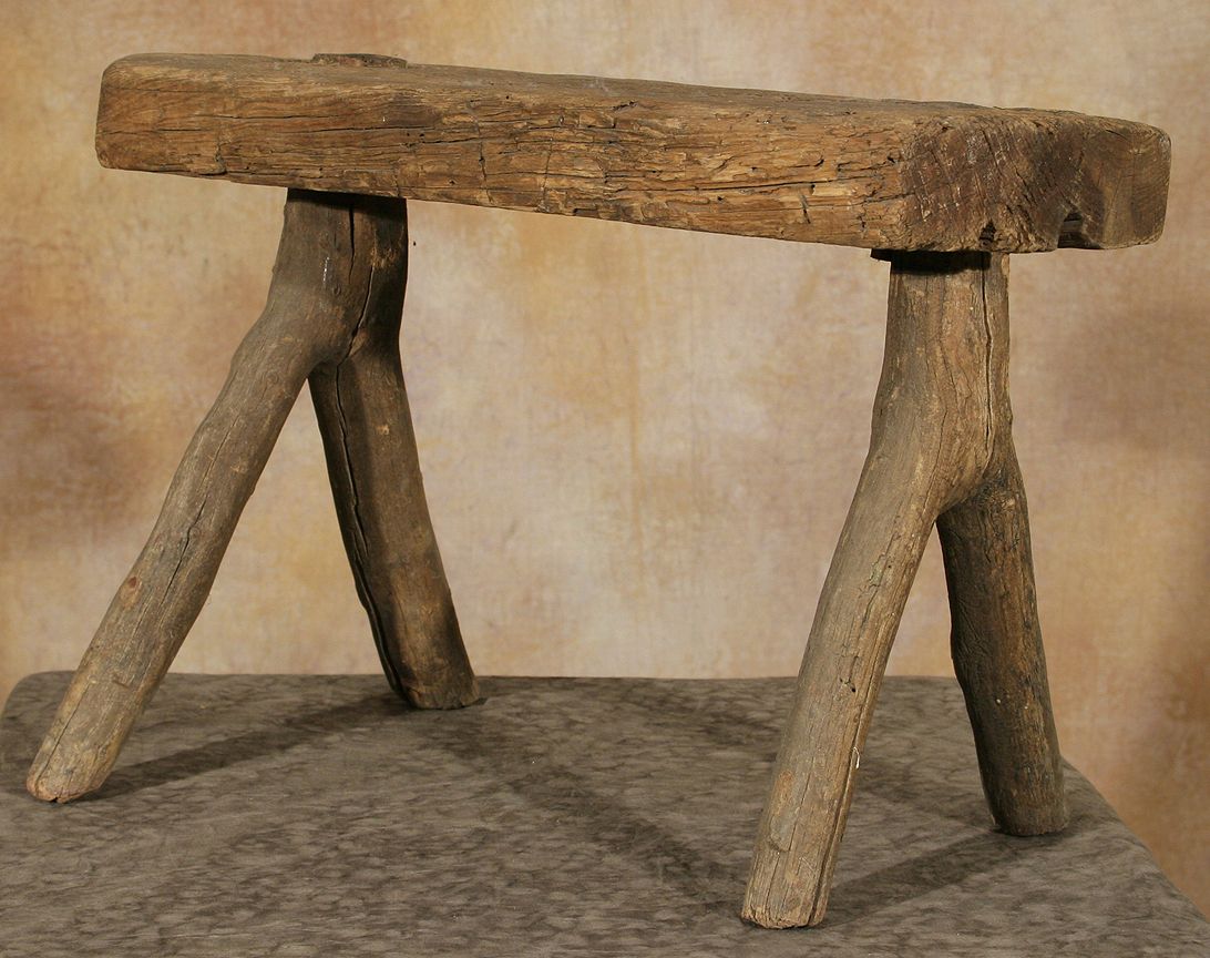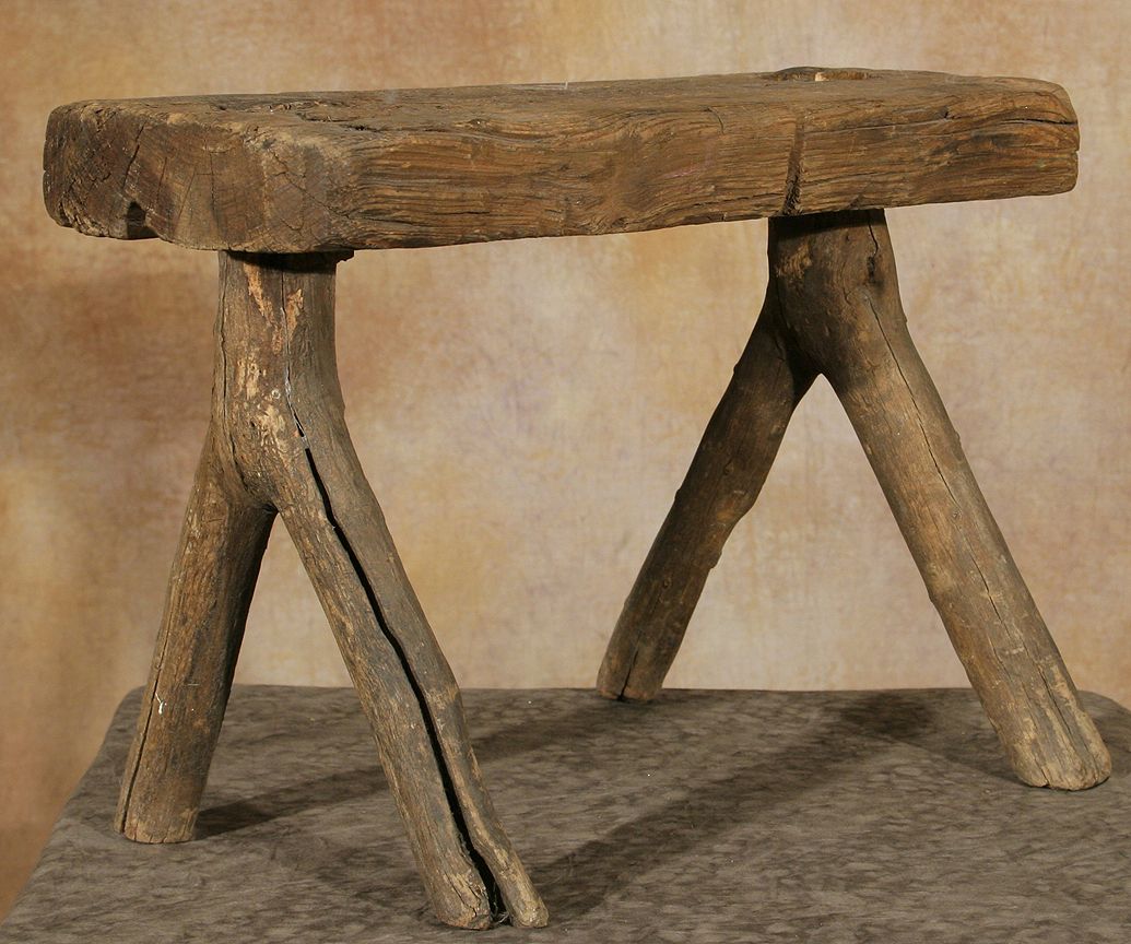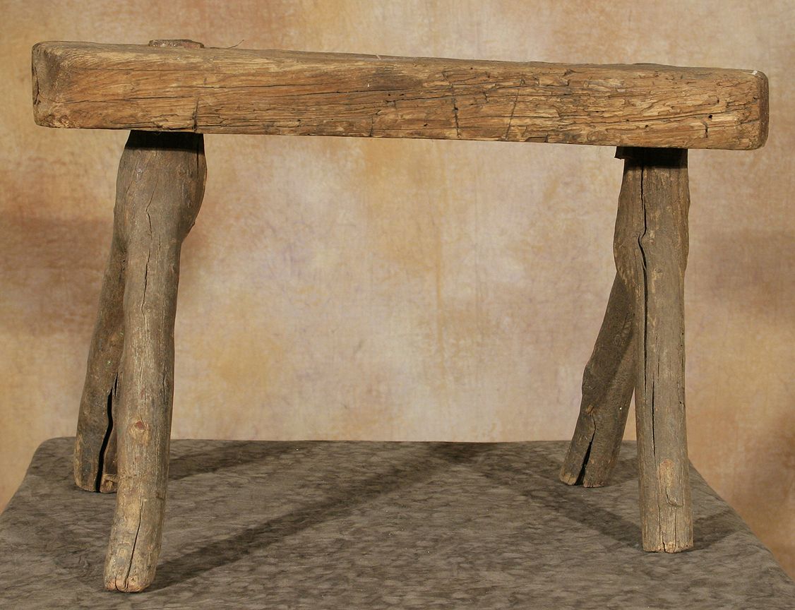 Wooden Bench From Kit Carson's House. 13 ½" x 20 ½" x 12 ½" made from one slab of wood and two forked branches. Circa 19th century. (est. $1,000-2,000). Provenance: "Kit" Carson (1809-1868), by descent to his son "Kit" Carson II (1858-1929), by sale to Ralph Meyers (1885-1948), by descent to his wife Rowena Meyers Martinez (1909-2000), by descent to her son Ouray Meyers (b. 1941). CONDITION REPORTS: www.auctioninsantafe.com/docs/cr2012.pdf