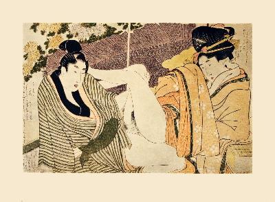 Reference #: ULGH1665 Artist Name: Kitagawa, Utamaro Title: Untitled (Scene 1) Medium: Offset Lithograph Edition Size: Unknown Year: Unknown Paper Size: 13 x 17.75 inches Image Size: 9.75 x 14.75 inches Condition: A-: Near Mint, very light signs of handling Notes: Here a skillful playboy enjoys the particular piquancy of initiating a young girl who is still inexperienced because she was only recently sold into the bordello. She says: "I find this position terribly humiliating. Please don't look there! Please don't ever look there!" He replies: "You won't lose anything from my looking at it. You may feel terribly ashamed now, but in time you'll find it easier, believe me. So long as you're not relaxed, you won't understand what it's all about."
