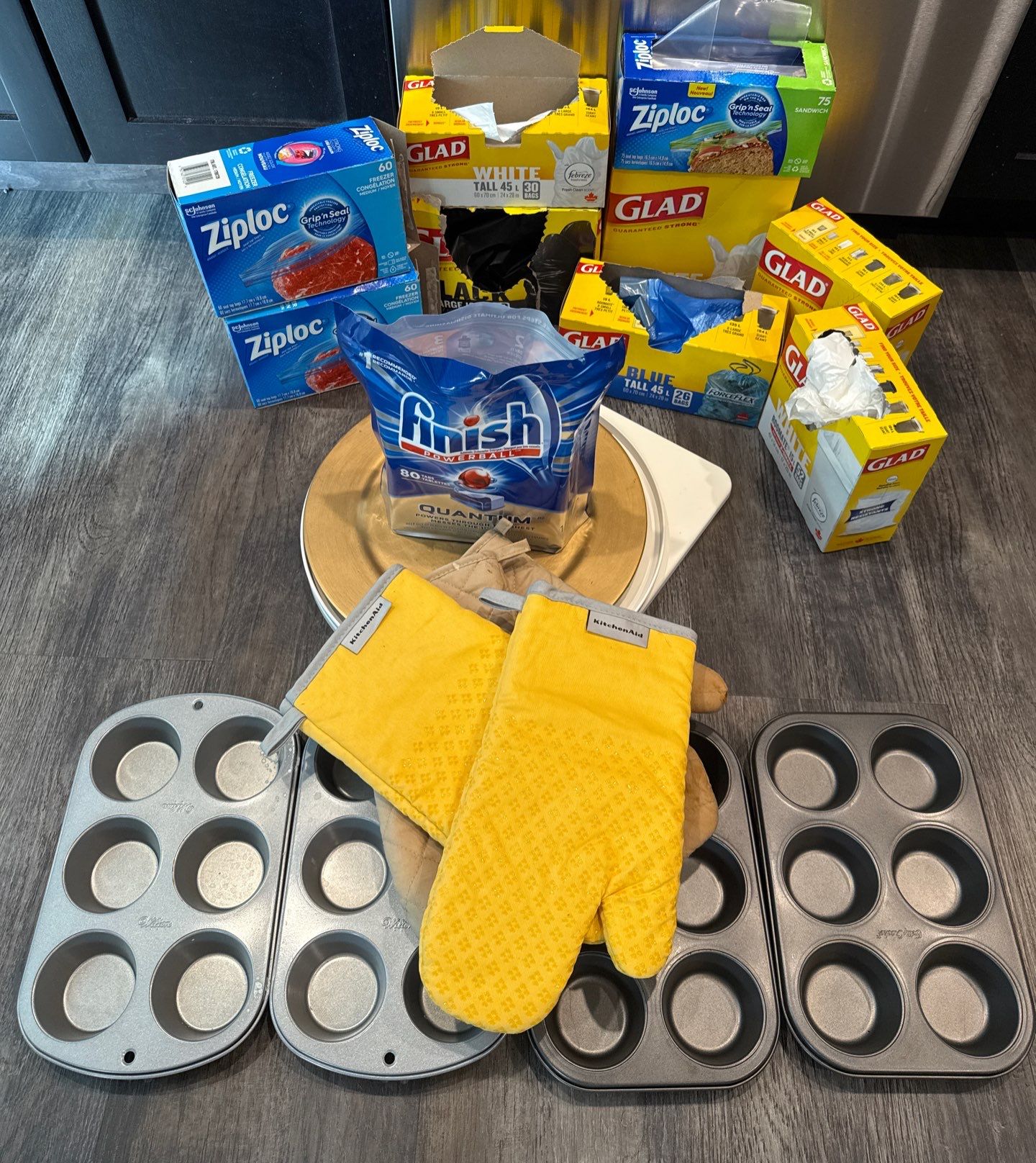 Kitchen-Aid Cook Gloves, Lazy Susan Finish Dishwasher Tabs, Glad Garbage Bags & More