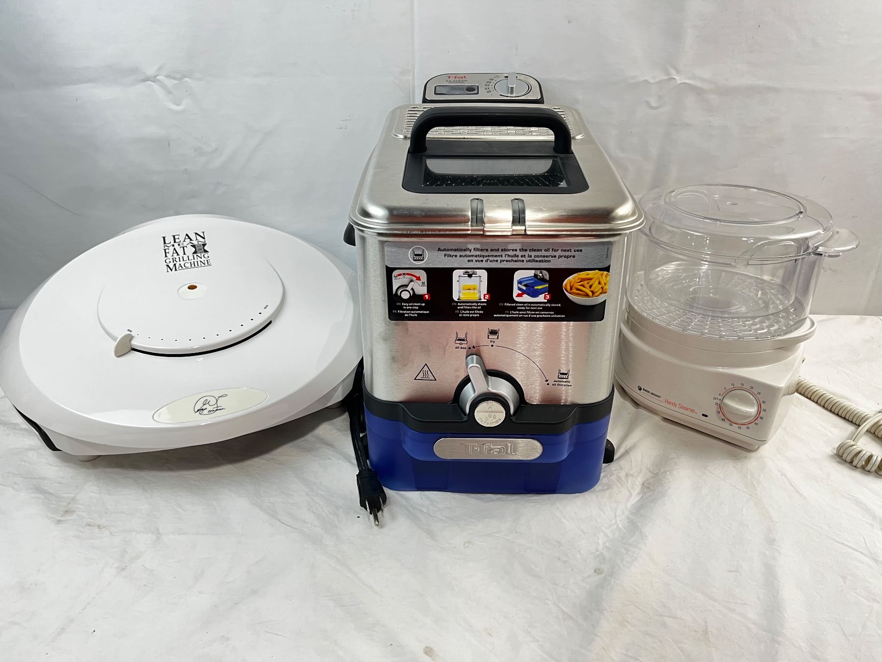 Including T-Fal E.Z Clean deep fryer (new) - Black & Decker Handy Steamer and George Foreman Grill - all work
