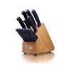 Kitchen Classic Block Set, 13 Pc., Kraton Handle, Oak Block Kitchen set includes an oak block stand, a paromg knife, a boning knife, utility knife, chefs knife, a slicer, a bread knife and 6 steak knives all made form German 4116 stainless steel.