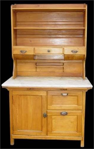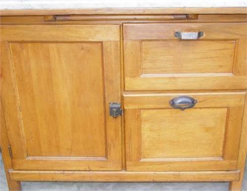 Kitchen Cupboard, fruitwood with marble work surface, 74" height x 44" width x 26" depth