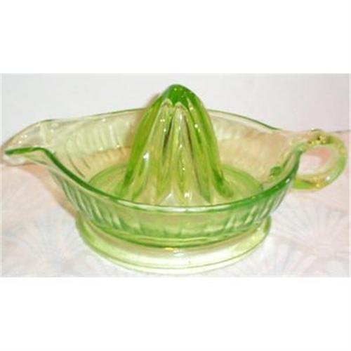 This fantstic Green Kitchen Depression Glass Ribbed Reamer is in SUPERIOR condition with no chips, cracks, or dings. The reamer measures 6" in diameter and is aboutu 8.50" from spout to handle. Not certain of the maker but possibly Hazel Atlas.