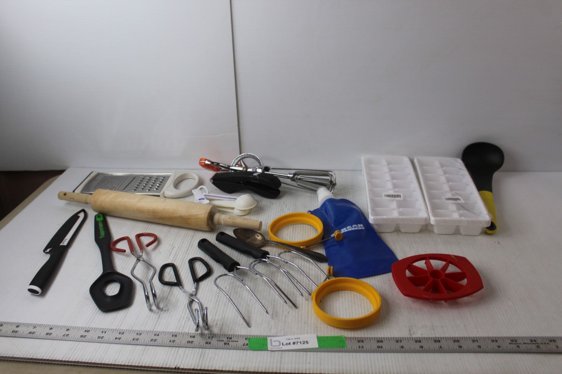 Kitchen Lot- (2) Ice Cube Trays, Cheese Grater, Measuring Spoons, Misc.