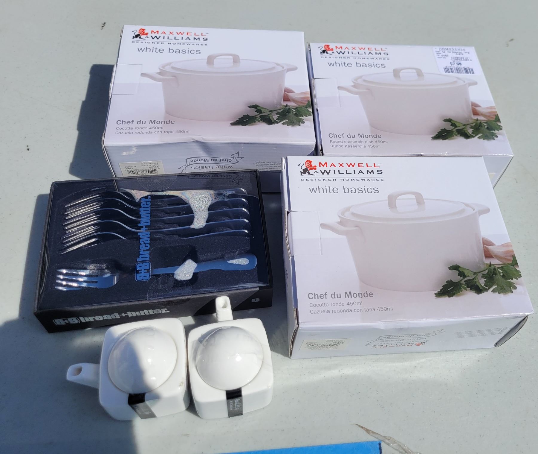 Kitchen Lot 2x David & Lily Mini Teapots, 3x Heavy Casserole Dish, Bread & Butter Forks