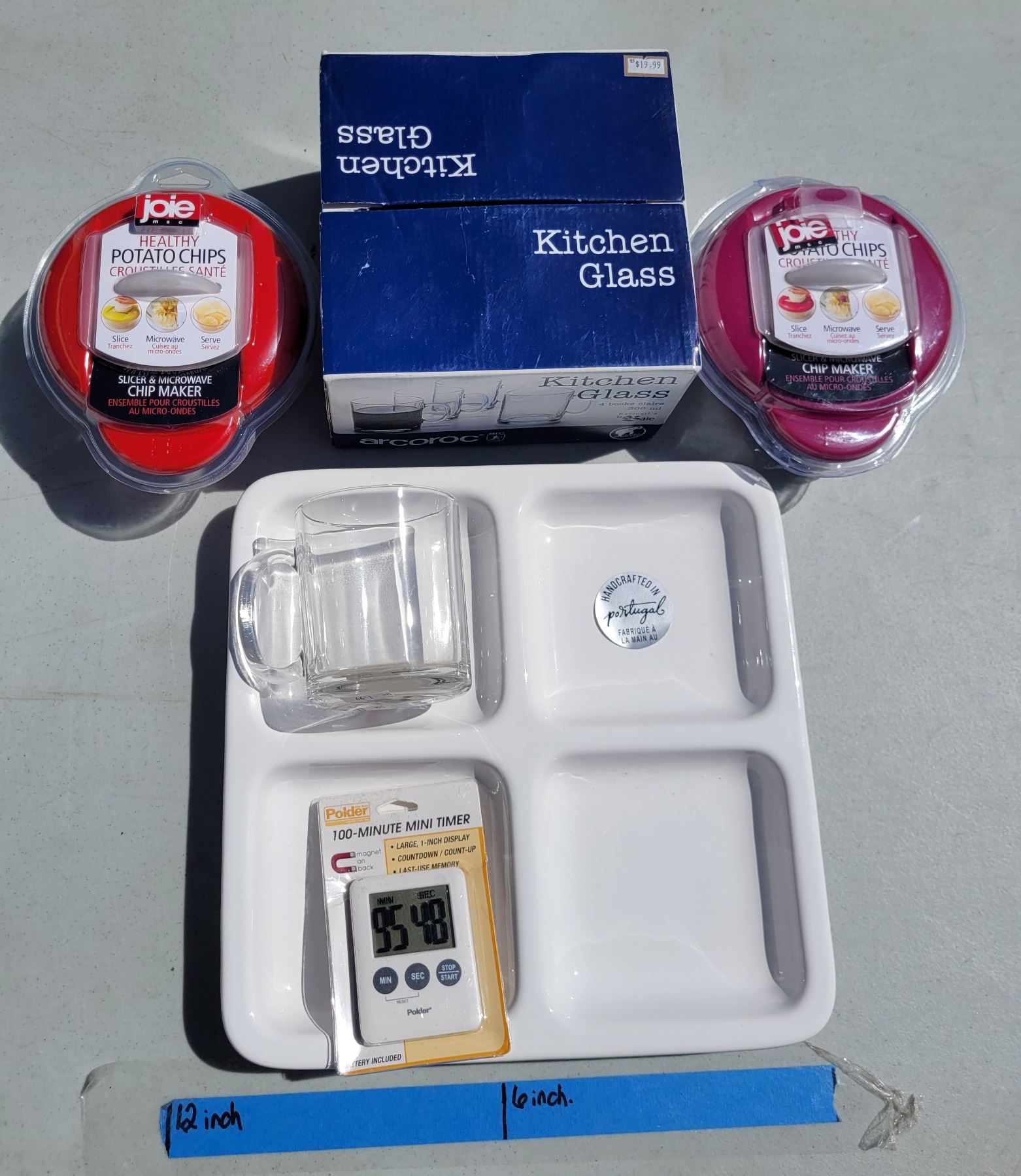 Kitchen Lot - 2x Joie Chip Makers; Timer; Aroroc Kitchen Glass Set + 1; Divider Dish