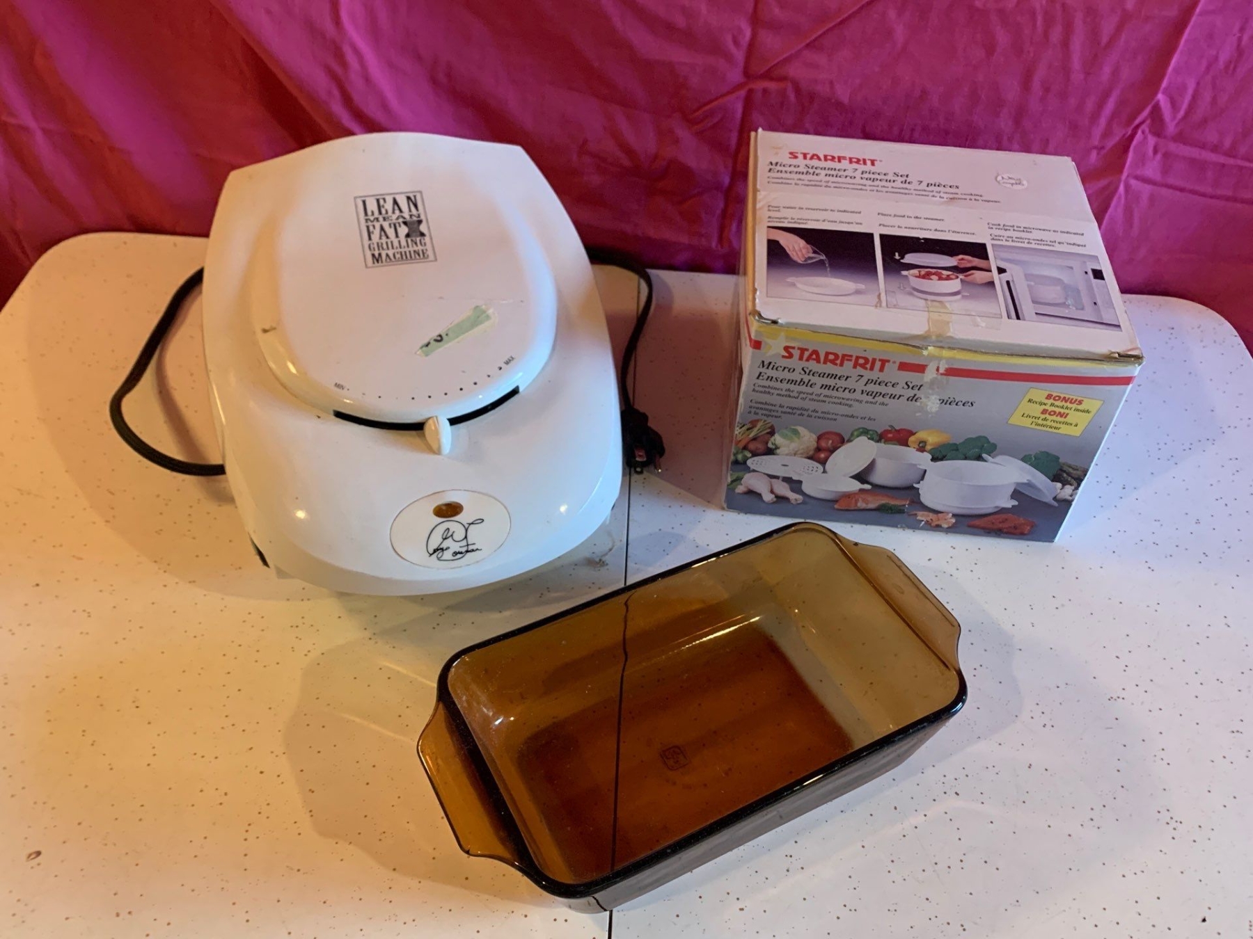 Kitchen Lot, Grilling Machine, Starfrit Steamer and Vintage Oven Wear