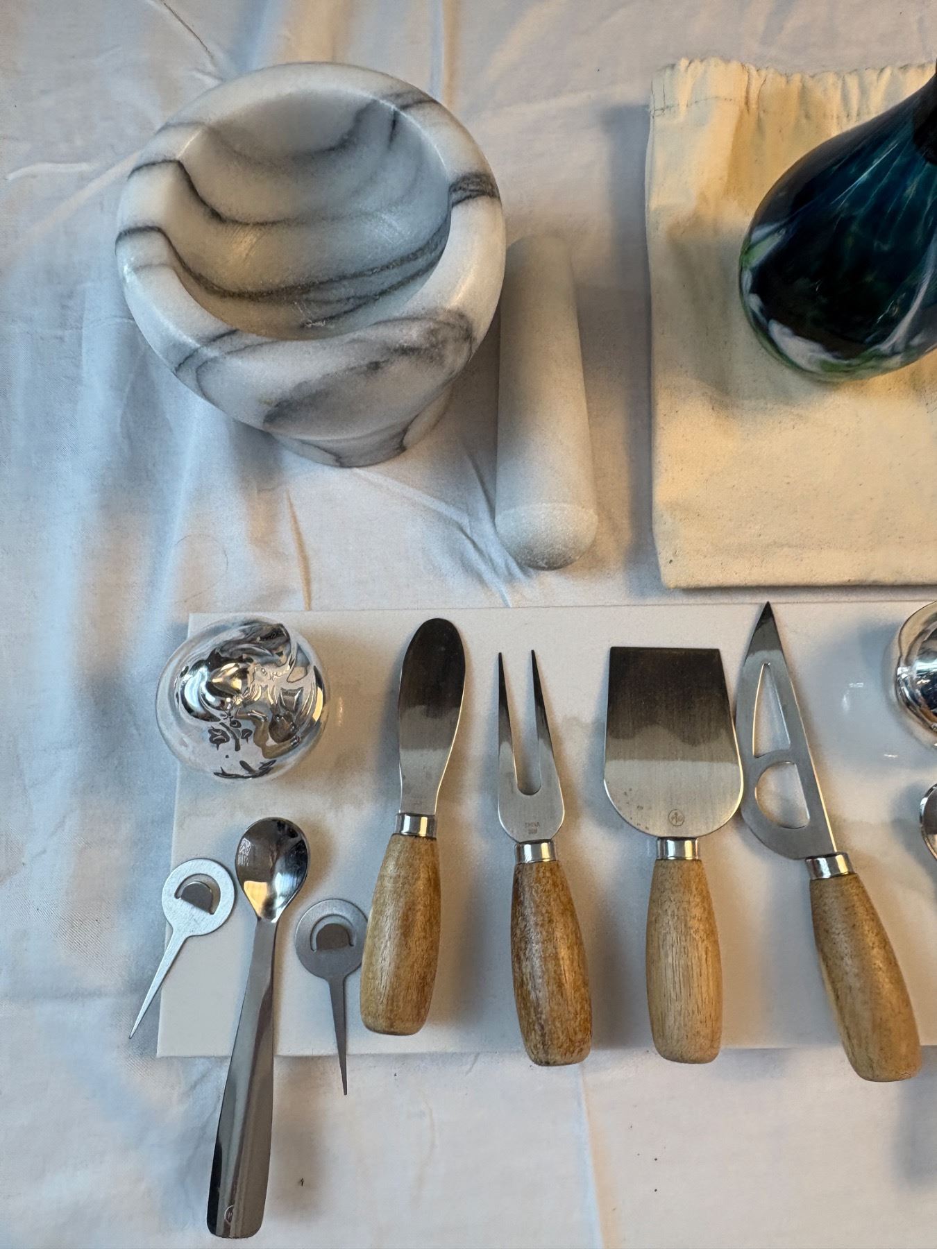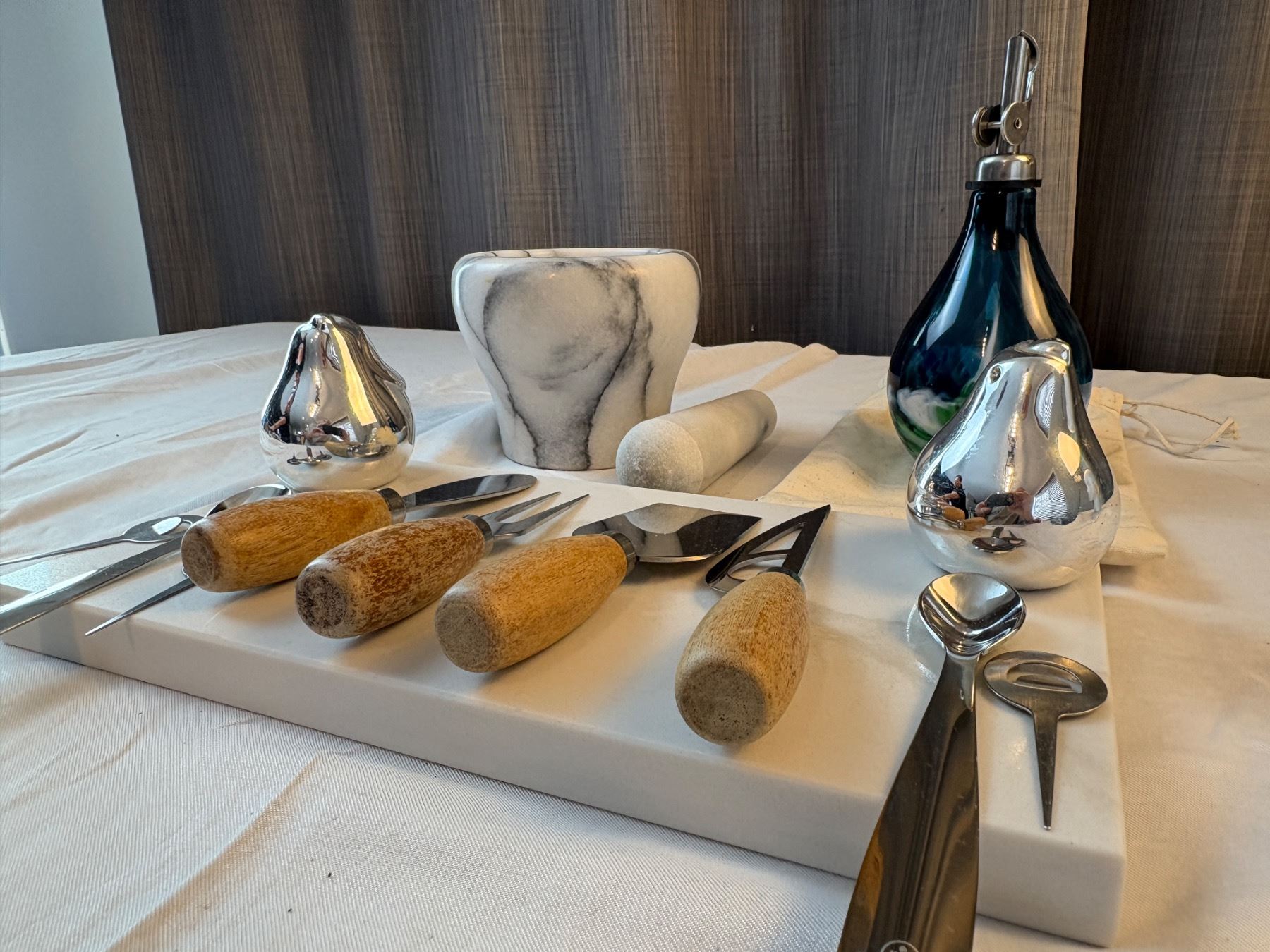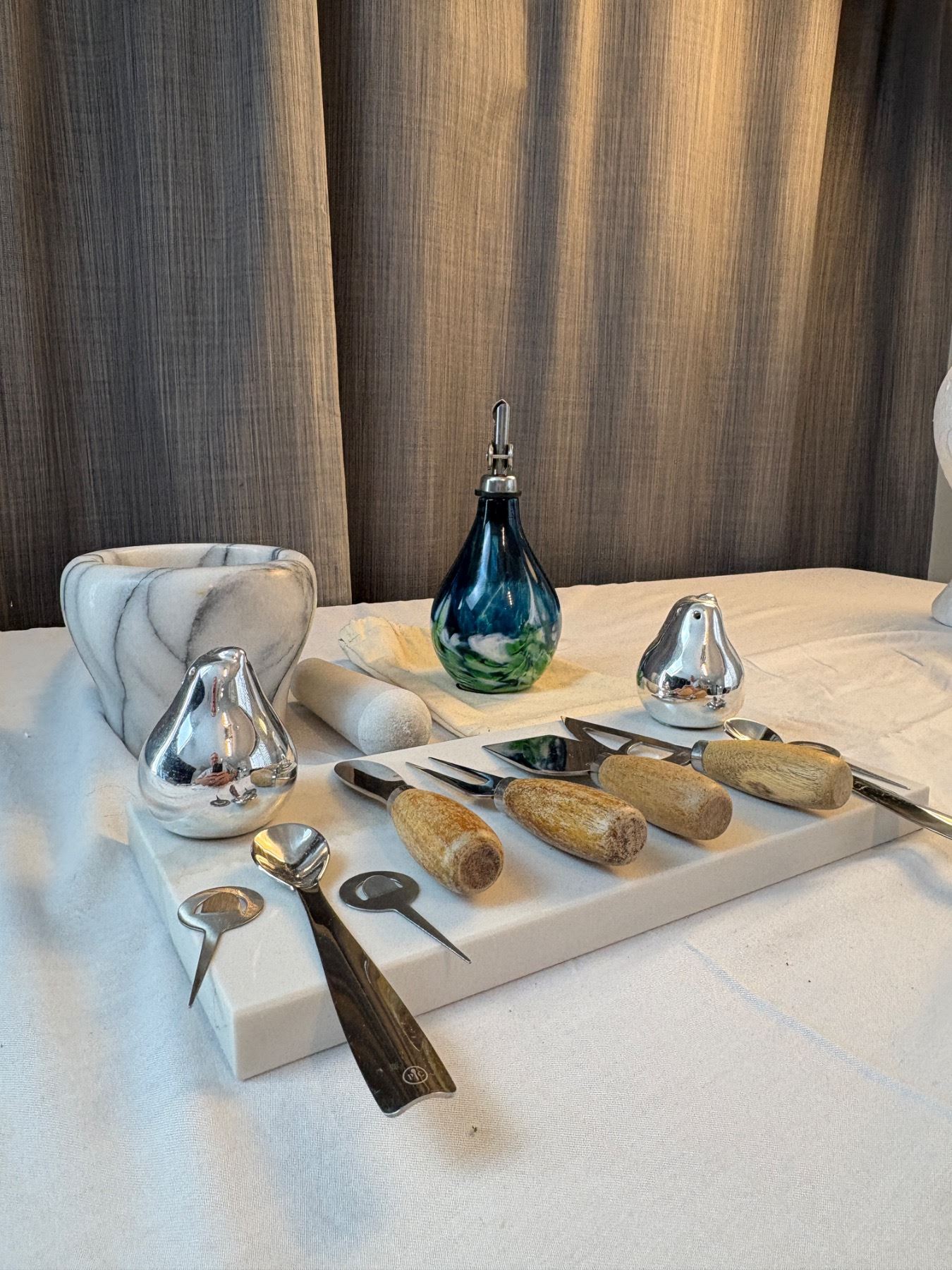 kitchen lot with oil dispenser, mortis and pestle