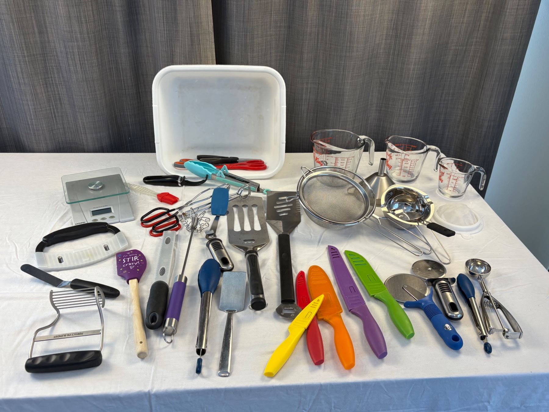 Starfrit food scale, measuring cups and other assorted items
