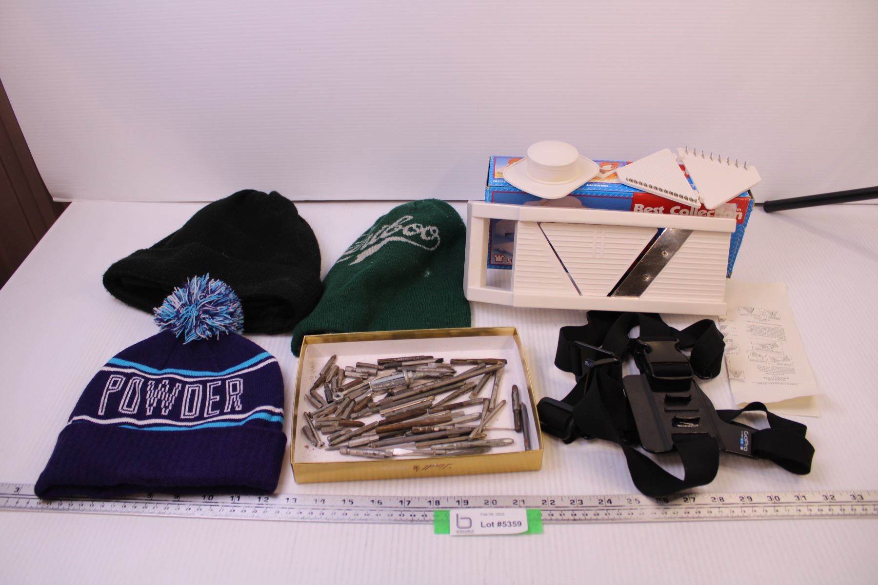 Kitchen Slicer, (3) Toques, and Assorted Driver Bits