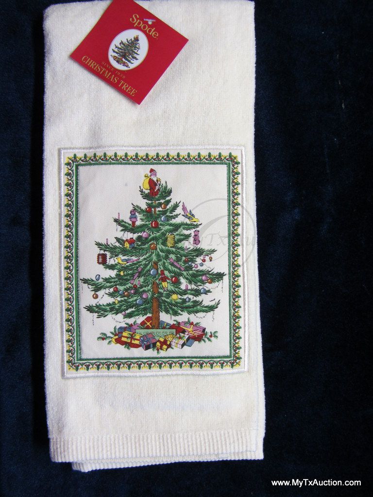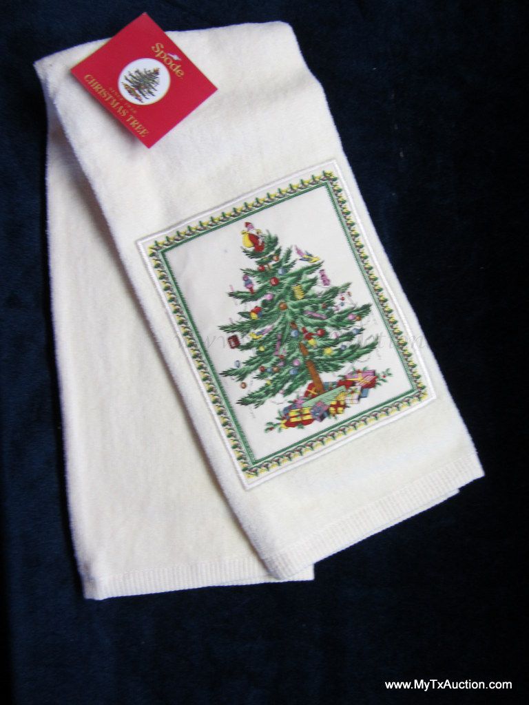 Kitchen Hand towel, the Spode famous Christmas tree is printed on a linen patch that