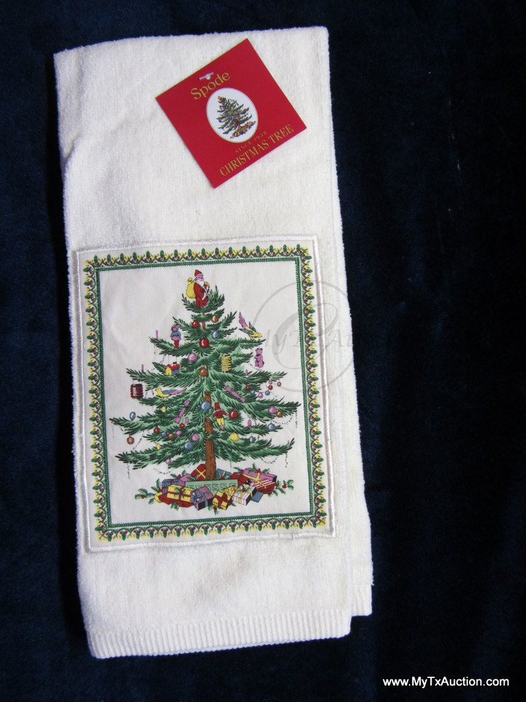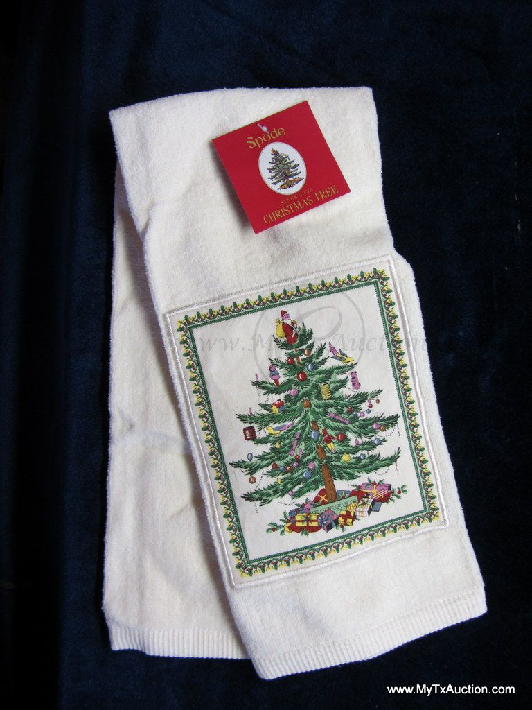 Kitchen Hand towel, the Spode famous Christmas tree is printed on a linen patch that