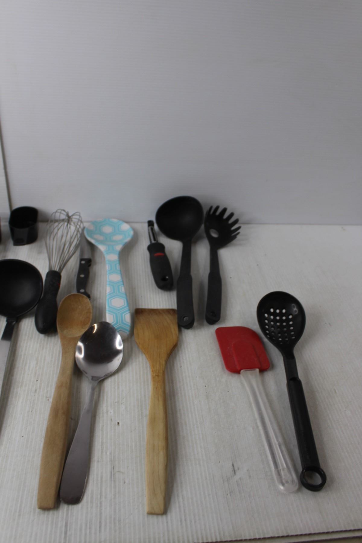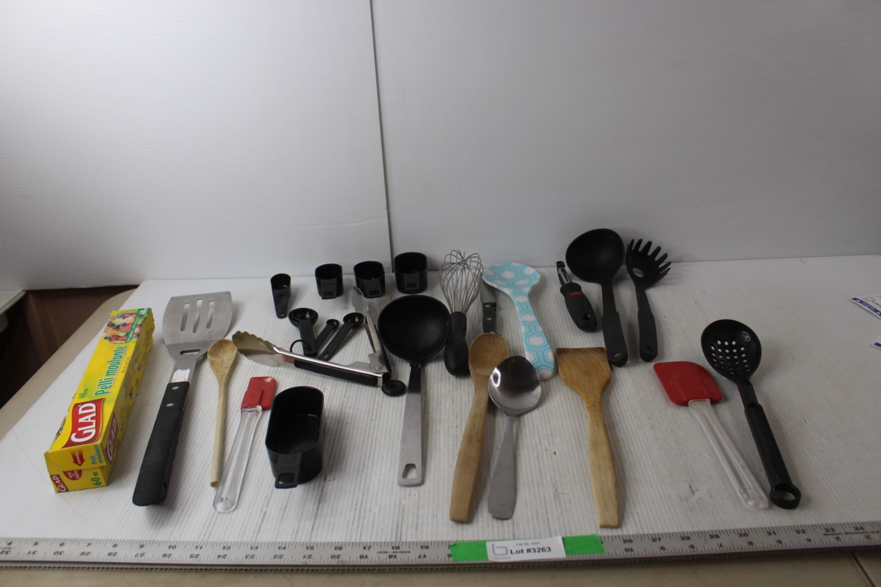 Kitchen Utensil Lot- Spatula, Ladle, Measuring Spoons, Misc.