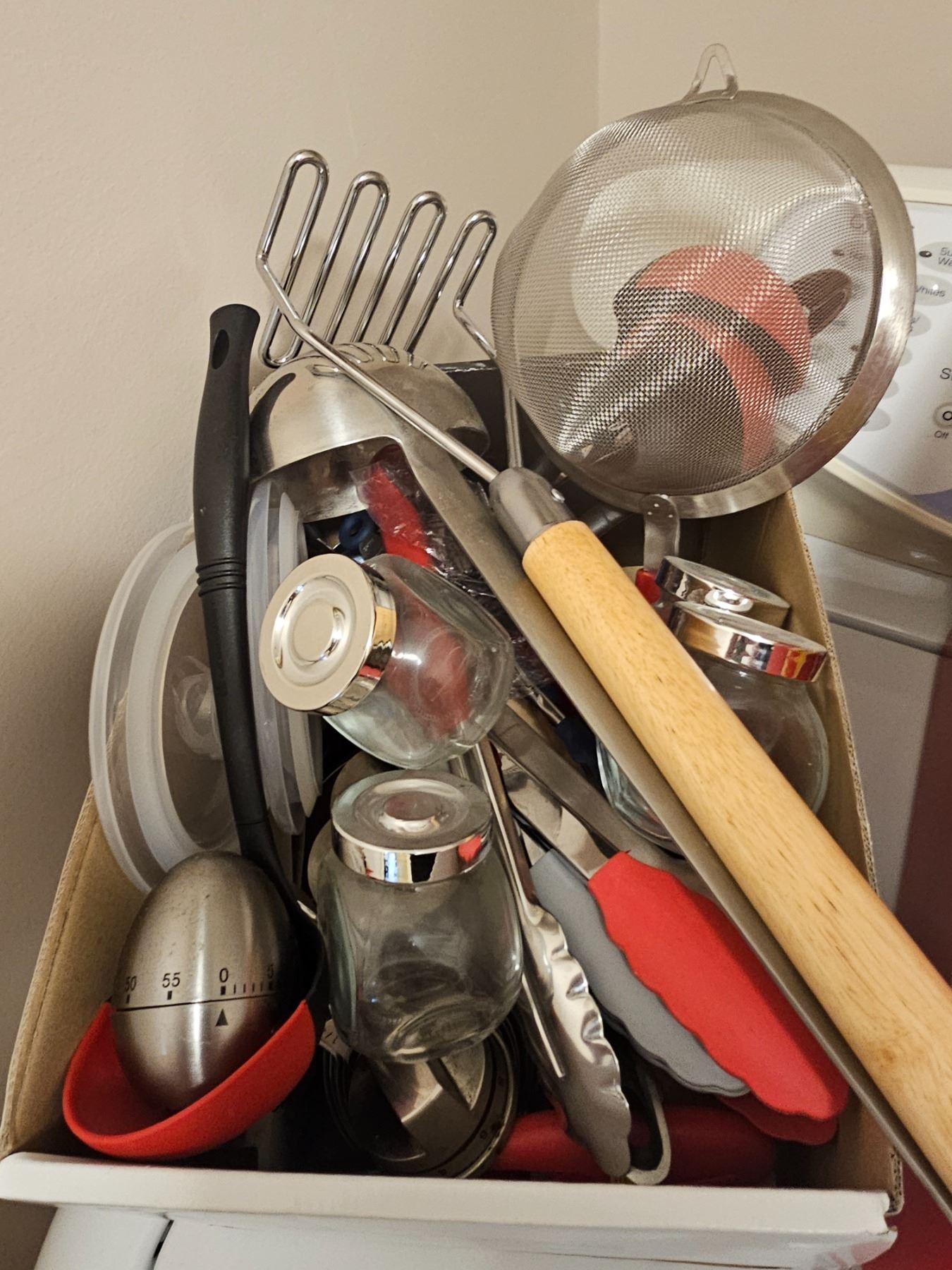 4 trays of quality kitchen utensils and some spice jars. Pickup at 9 am