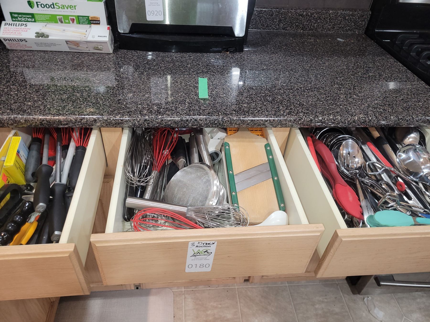3 drawers of quality kitchen utensils. Pickup at 10 am