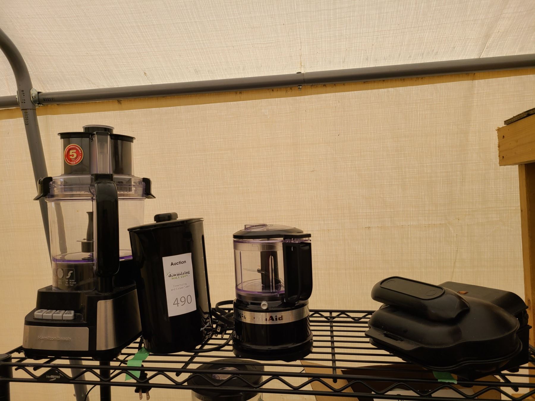 Hamilton Beach food processor, KitchenAid food chopper, Proctor Silex kettle and sandwich maker. Pickup at 9am