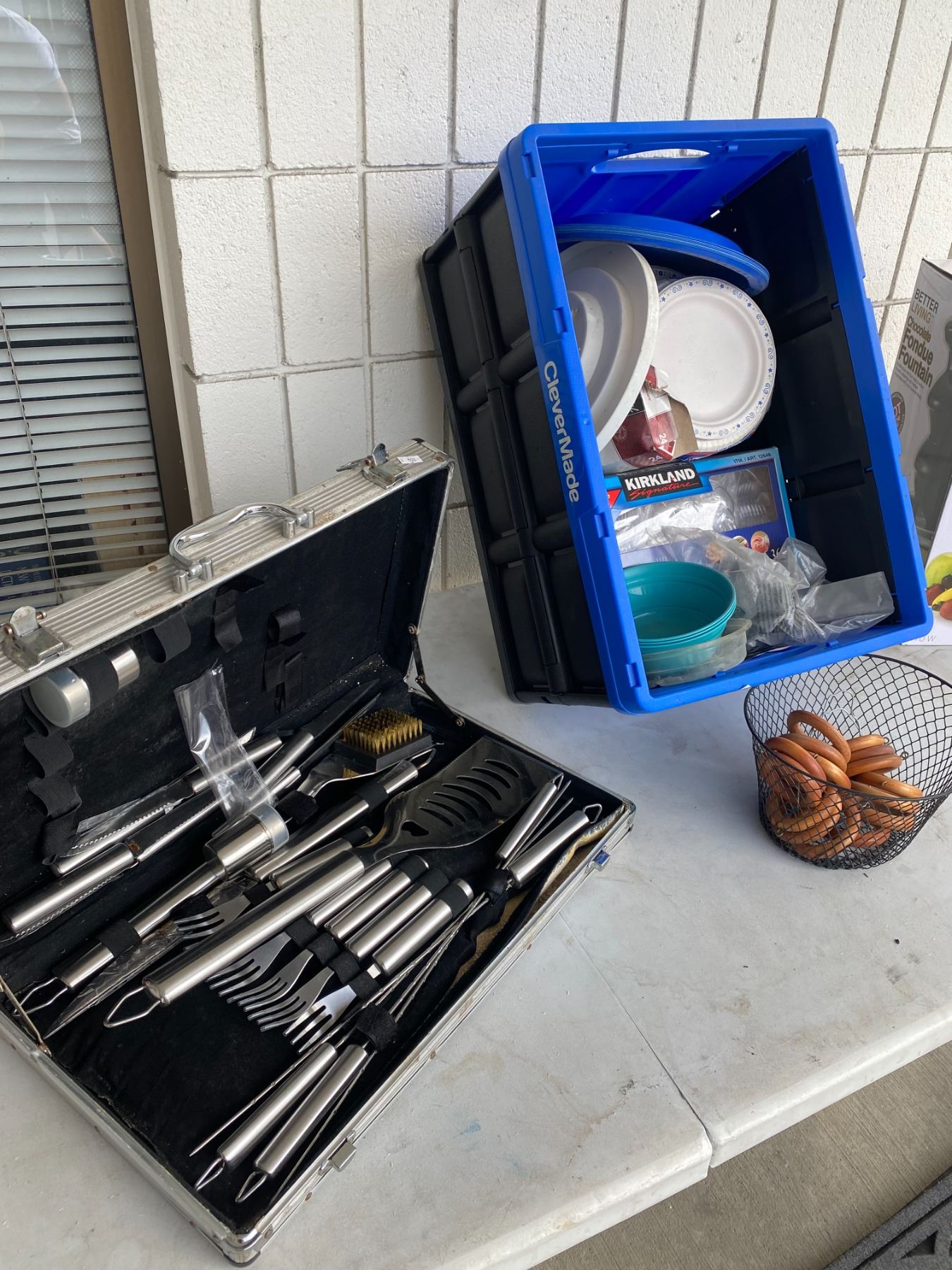 Kitchen items with folding crate and bbq set