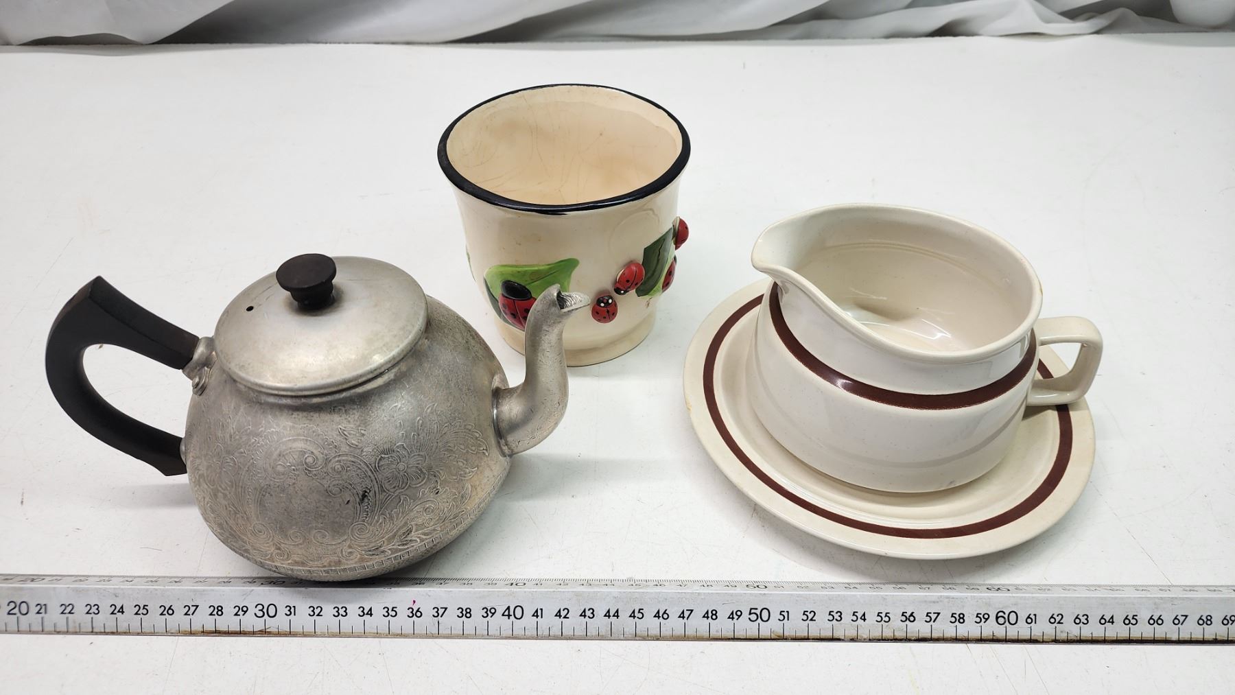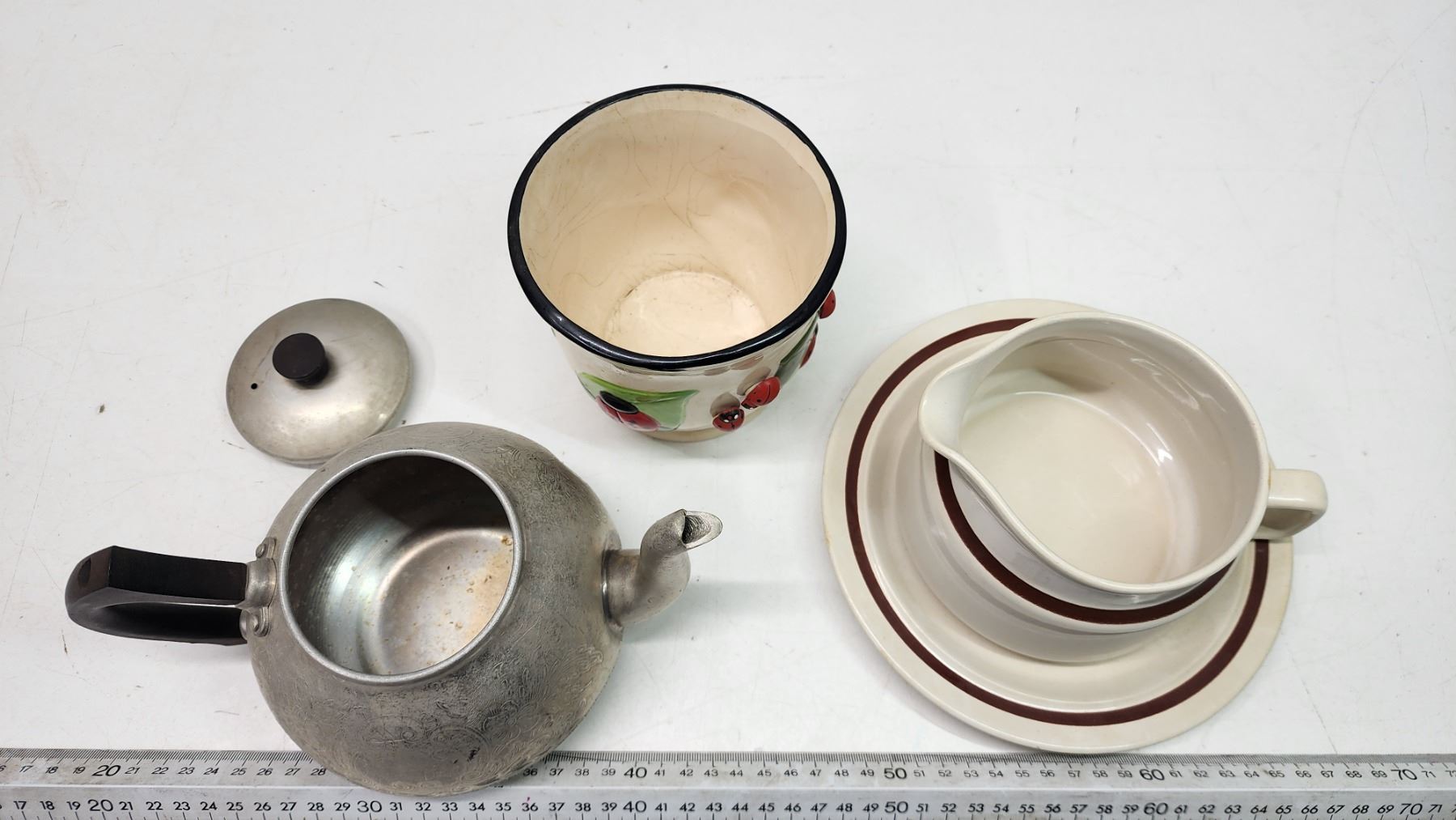 Kitchen wares - Teapot, stoneware soup n saucer, and plant pot