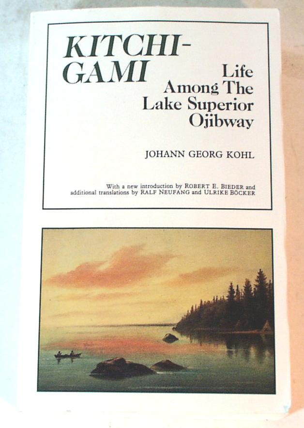 Kitchigami; Live Among the Lake Superior Ojibway by Johann Georg Kohl. Paperback. 477 pages. 1985. Very good condition. Describes daily life among the Ojibway, detailing religiuos practices, legends, foods, games, medicines, homes, clothing, and methods of travel, hunting, and fishing. Size: 5-1/2" x 8-1/2"