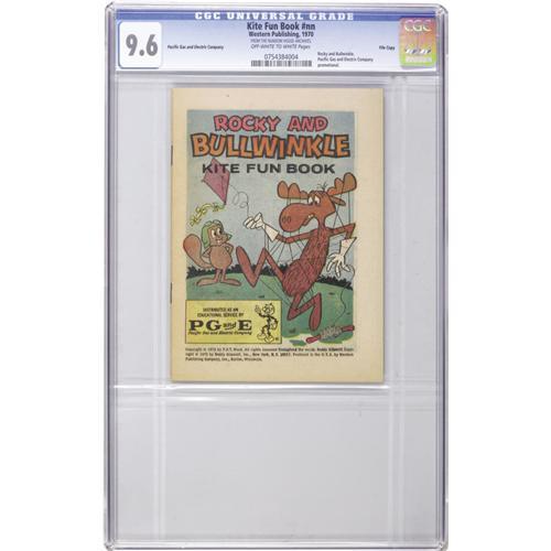 This "Fun" group of books includes CGC NM+ 9.6 copies of the 1969 <B>Dastardly and Muttley </B></I>(Southern California Edison), 1970 <B>Rocky and Bullwinkle </B></I>(Pacific Gas and Electric), 1973 <B>Lassie</B></I> (Southern California Edison), 1974 <B>Underdog </B></I>(Kansas City Power and Light), and the 1977 <B>Popeye </B></I>(Winnipeg Manitoba Hydro).<B> </B></I>Overstreet 2006 NM- 9.2 value for group = $275. <I>From the Random House Archives</B></I>.<BR><BR><b>Shipping:</b> Slabbed Comic (<a target="_blank" href="http://www.heritageauctions.com/common/shipping.php">view shipping information</a>)