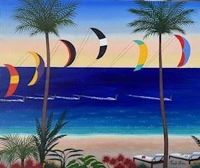 A lover of water sports, French artist Fanch Ledan knows a thing or two about windsurfing, and he loves Hawaii. This is a 20x24" acrylic on canvas, with COA,