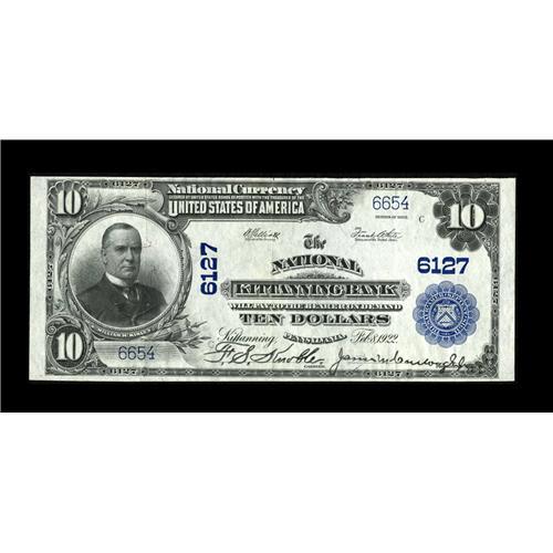 <B>Kittanning, PA</B></I> - $10 1902 Plain Back Fr. 634 <B>The National Kittanning Bank</B></I> Ch. # 6127<BR><B>Extremely Fine.</B></I> This is the nicest of the large size notes known from here. It is bright, well centered and has full strength stamped signatures. The example we offer here has the unusual 1922 plate date.<BR><BR><b>Shipping:</b> Coin/Currency (<a target="_blank" href="http://www.heritageauctions.com/common/shipping.php">view shipping information</a>)