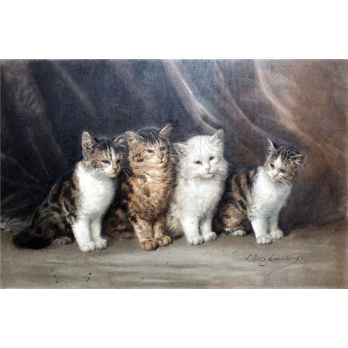 Born in Paris, 1825 studied with Eugène Delacroix and Paul Delaroche. He also copied the old masters at the Louvre, where he was very influenced by the Flemish School. Lambert debuted at the Salon in 1847 with a still life of birds. In 1854, he moved to the rue Notre-Dame-des-Champs in Paris, where he lived with other artists including Gerôme and Toulmouche, all working side-by-side, dedicated to their art. Lambert?s great success at the Salon of 1857 with ?Cat and Parakeet? decided his career; thereafter he garnered a world-wide reputation as a painter of cats and dogs, and was dubbed the ?Raphael of Cats.? He received medals in 1865, 1870 and was presented with the Chevalier of the Legion of Honor in 1874. In 1874, he painted Baron de Rothschild surrounded by his dogs.