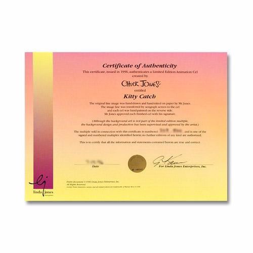 Own this amazing piece based on the original line image hand drawn and hand-inked on paper by Mr. Jones! "Kitty Catch" is a sold out limited edition animation cel with hand painted coloring on sericel outline, numbered and hand signed by Chuck Jones (1912-2002). Includes Certificate of Authenticity! Measures approx. 12.5" x 10.5".