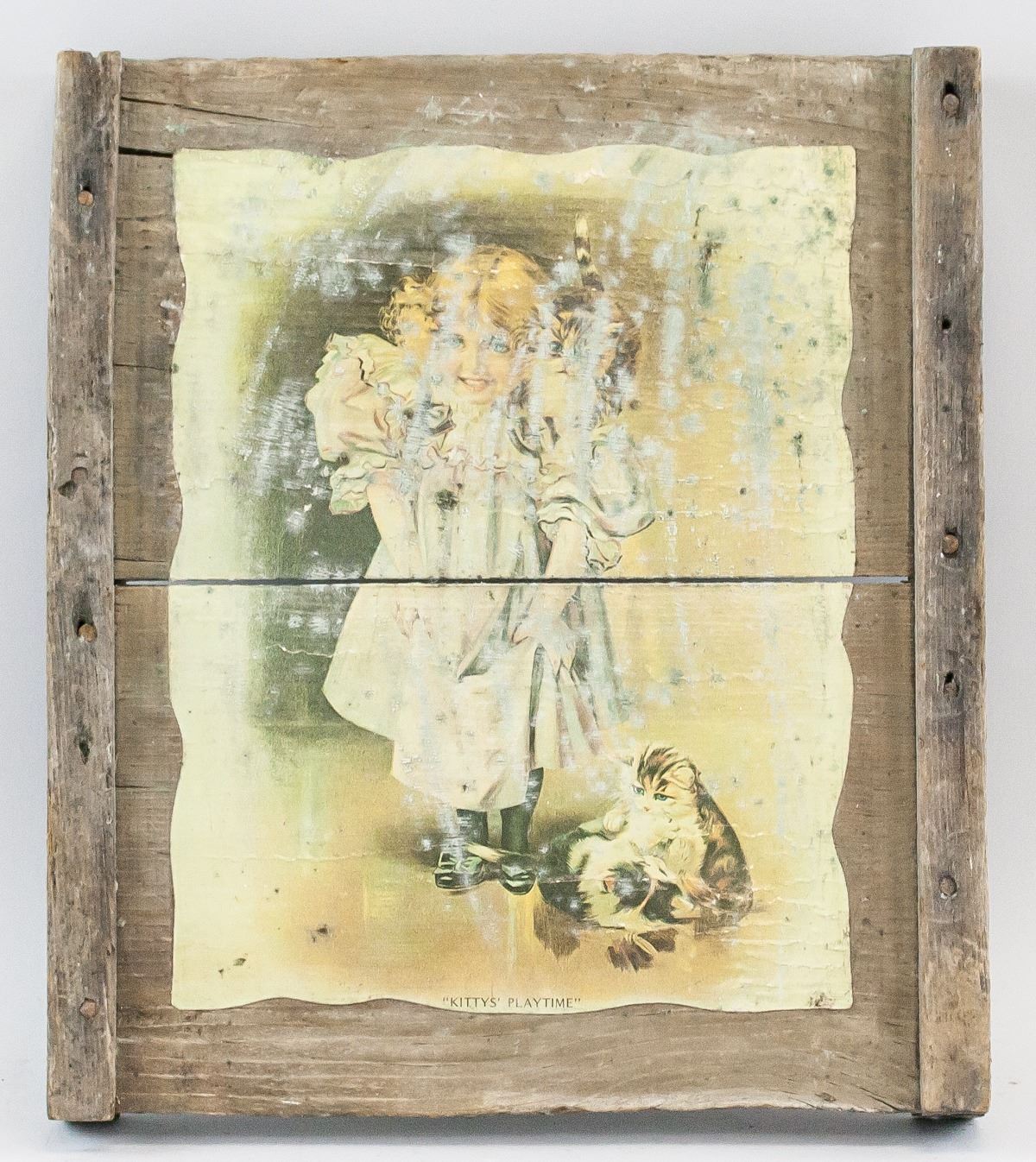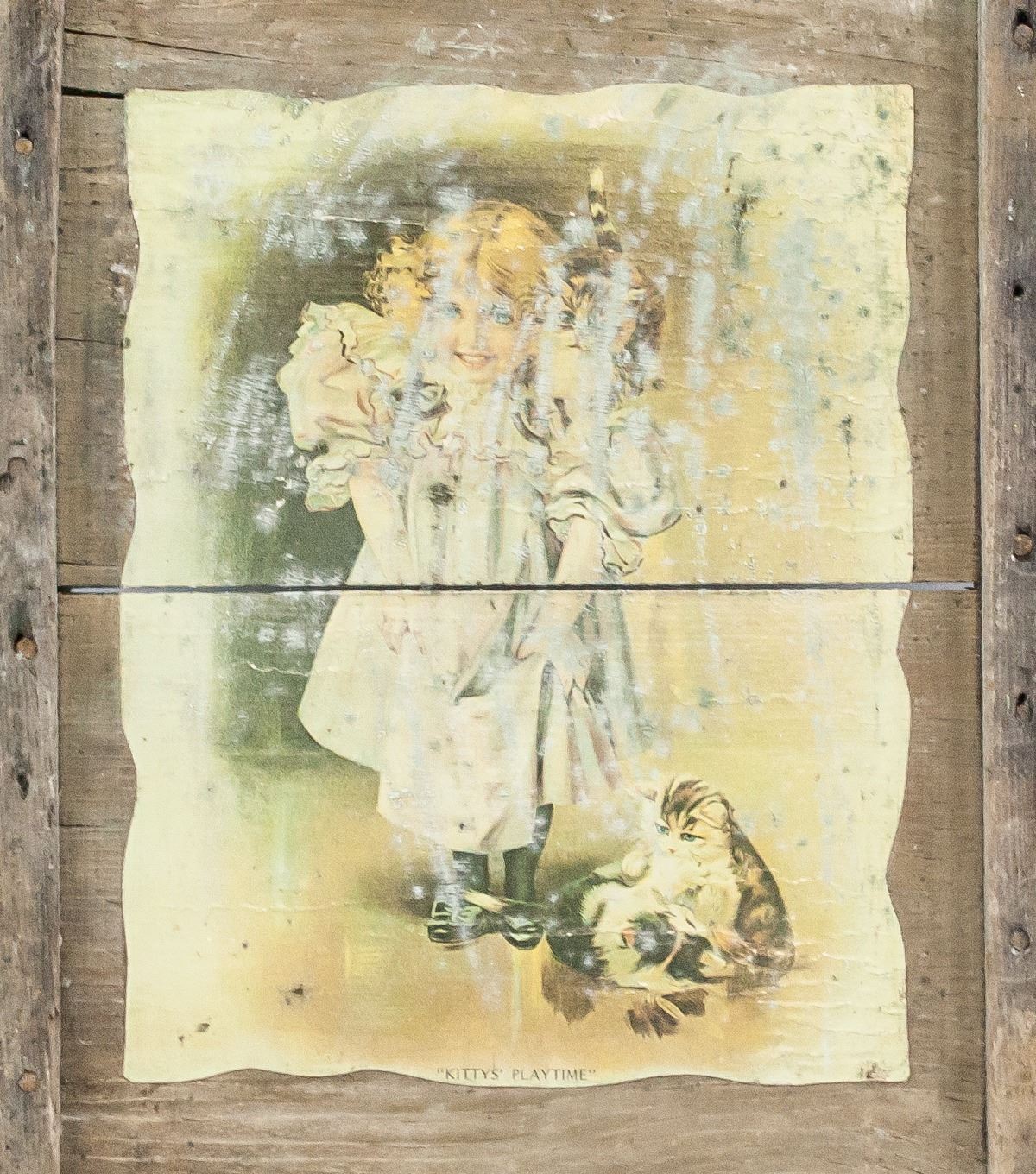 Vintage commerical poster raisin drying rack. Kittys' Playtime. 35 x 30 cm (13.5 x 11.75 in)