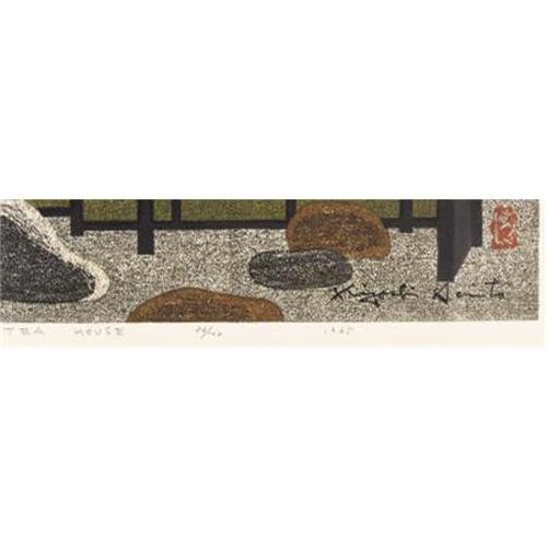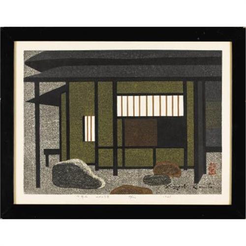 <B>KIYOSHI SAITO (Japanese, 1907-1992)</B></I><BR><I>Tea House</B></I>, 1965<BR>Color woodblock<BR>15-1/8 x 20-3/4 inches (38.4 x 52.7 cm)<BR>Ed. 86/100<BR>Signed in the plate lower right: <I>Kiyoshi Saito</B></I><BR> Watermark lower right: <I>Kiyoshi Saito</B></I><BR>Titled, numbered and dated in the lower margin<BR>Labeled on verso: <I>Self-Carved Self Printed / Kiyoshi Saito</B></I><BR><BR><BR><BR><b>Shipping:</b> Framed - with Glass, Medium (<a target="_blank" href="http://www.heritageauctions.com/common/shipping.php">view shipping information</a>)