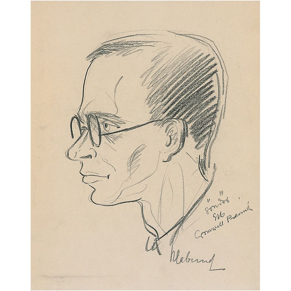 Alfred Henschke (1890-1928), known as Klabund, was a German writer who adapted and translated a number of far-eastern works. Original signed pencil sketch of Klabund by Emery Gondor on an off-white 8.75 x 11 sheet, signed in pencil by Gondor and Klabund. In fine condition, with mild scattered creases.