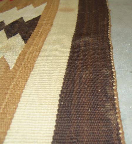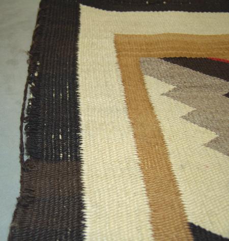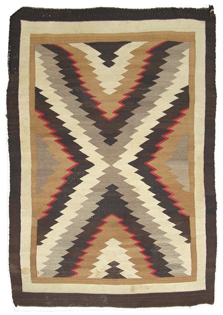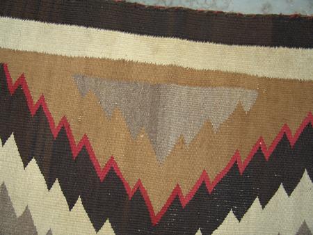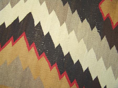 Large homespun wool rug with diamond zig-zag motif. 6' x 5'
