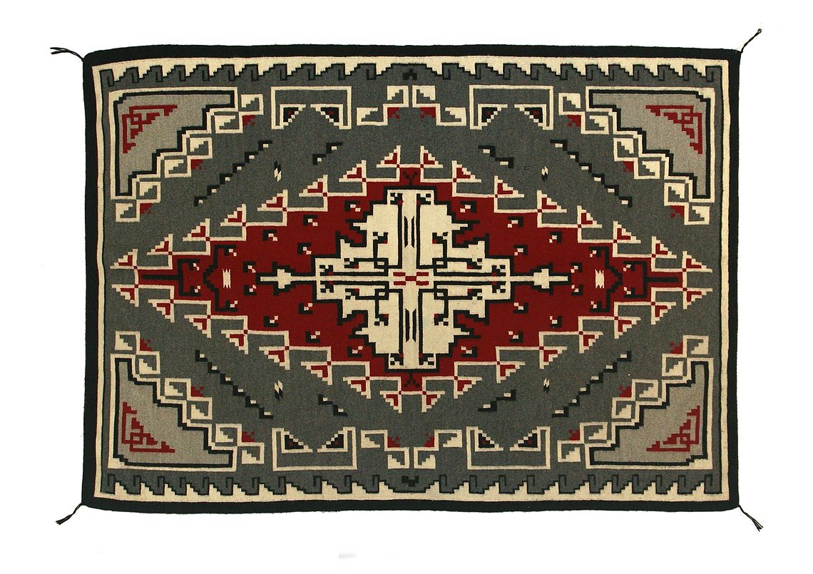 Klagetoh Weaving. 5'5" x 3'9". Grey background. Circa mid-1900s. (est. $1,200-1,700). CONDITION REPORTS: www.auctioninsantafe.com/docs/cr2012.pdf