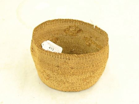 Ca. 1900s, Old pliable weave bowl with faint diamond designs. Very good condition. Ex. Judge Bonner Collection. 3-1/2" x 5-1/2"