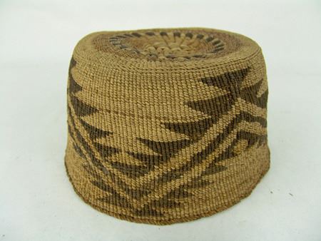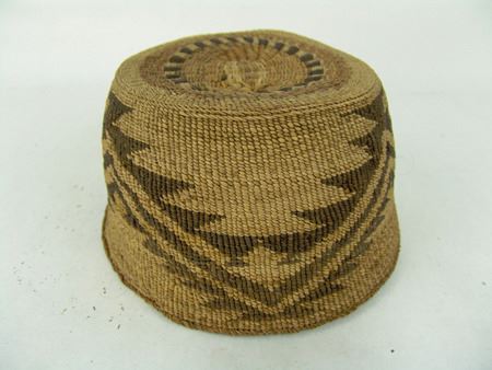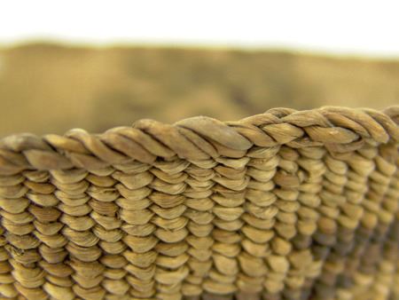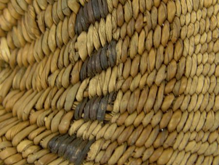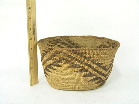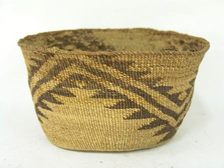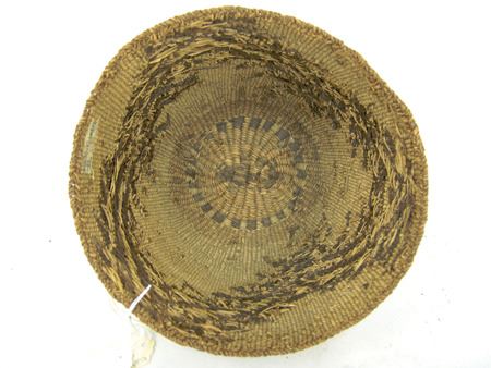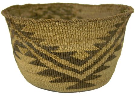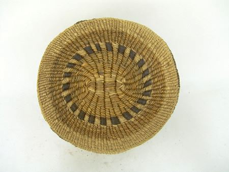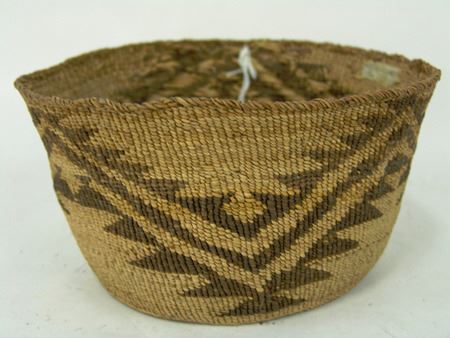 Ca. 1920s, Classic soft weave flat bottomed bowl with slightly flared rim and repeating serrated chevron figures. Very good condition. 5" x 9"