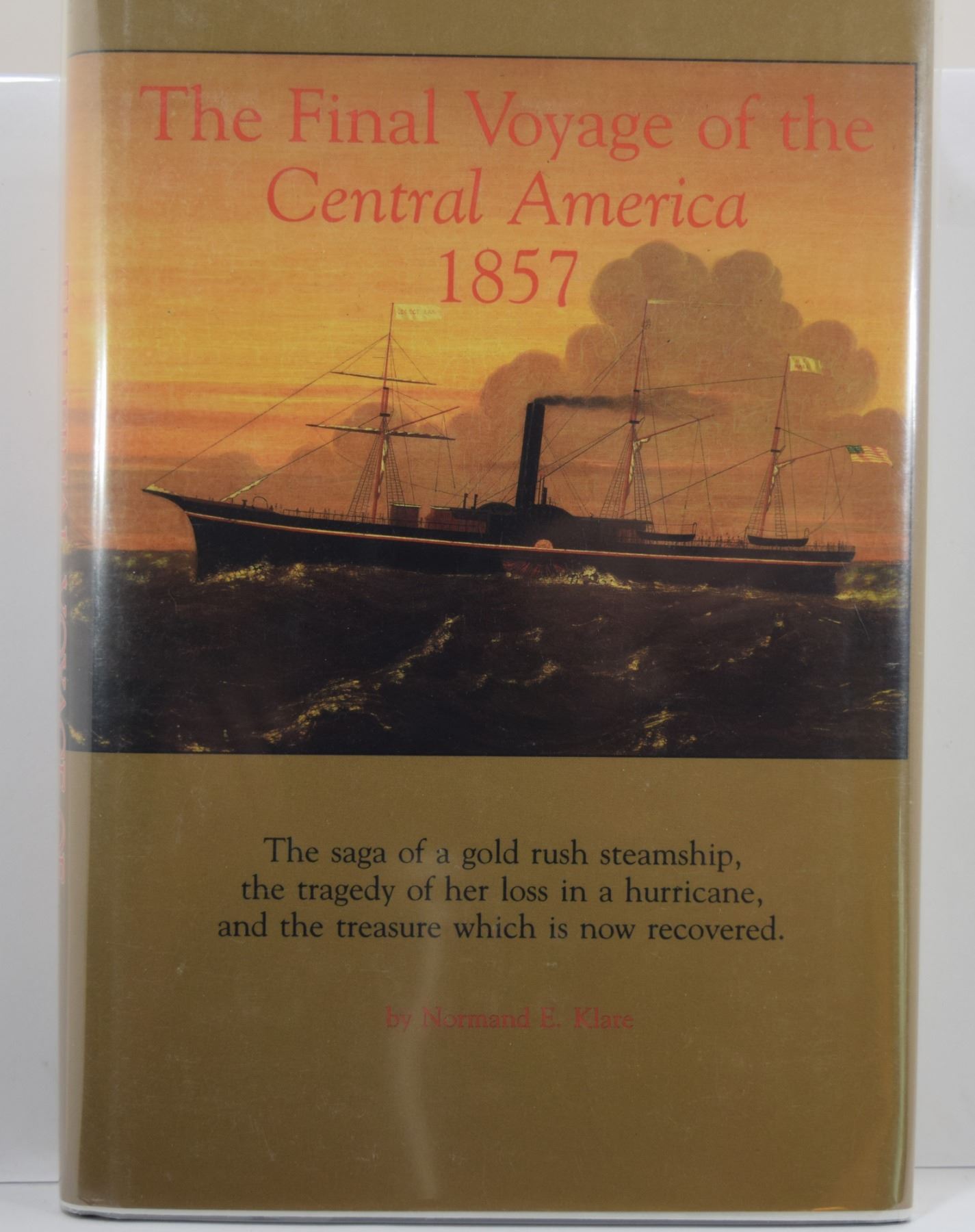 Klare, Normand E. THE FINAL VOYAGE OF THE CENTRAL AMERICA 1857. The Arthur H. Clark Company. 1992. 12mo, 278 pages; Hardcover w/ DJ; This book tells the story of the sinking of the gold rush steamer, "SS Central America", off the coast of North Carolina in 1857.and the treasure recovery by the Columbus-America Discovery Group in the late 1980's. This is the first book about the salvage of the "SS Central America". Subject: History - Sunken Treasure