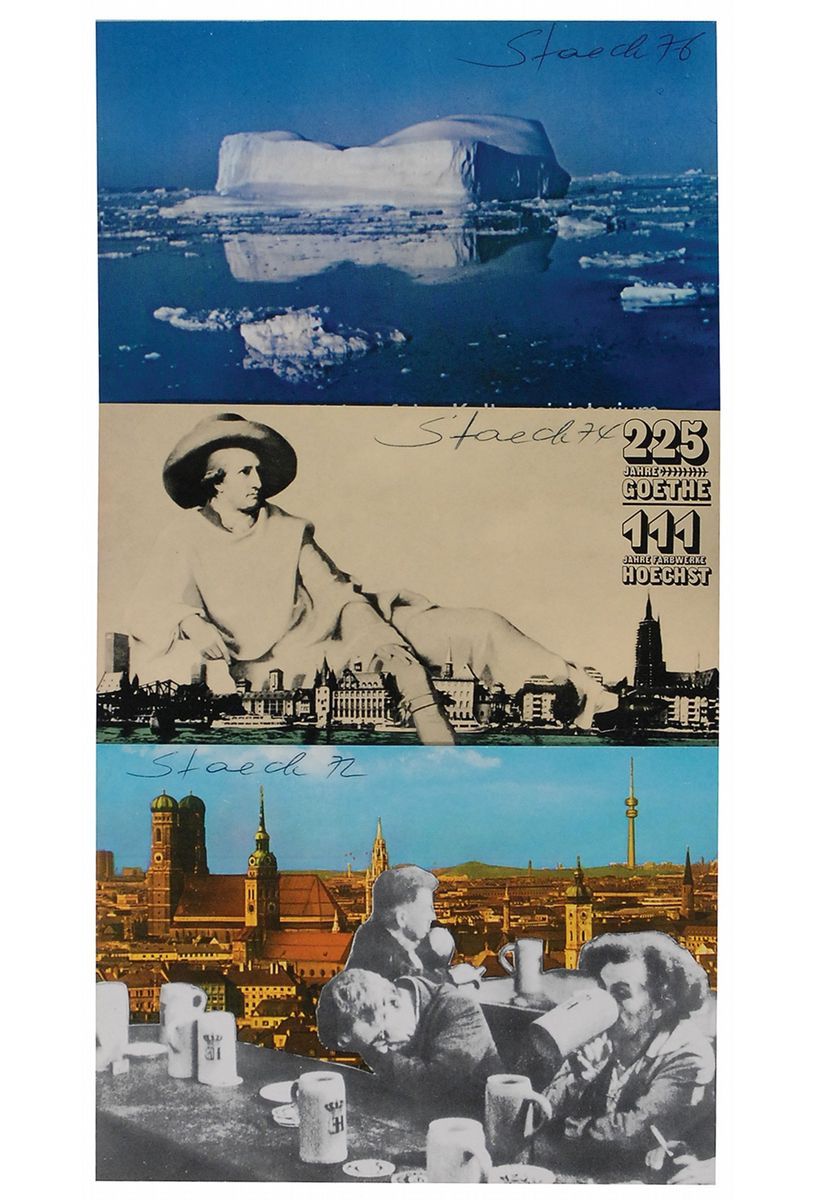 Three color postcards of Staeck’s unusual works, 4 x 5.75, each signed and dated at the top in black ballpoint. In overall fine condition.