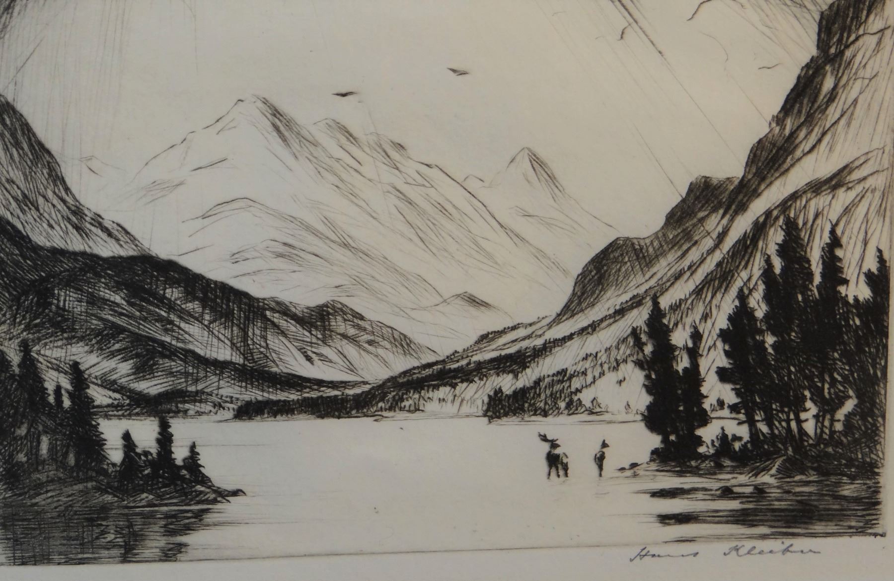 Kleiber, Hans etching, Elk In Lake, 4 1/2" x 6"