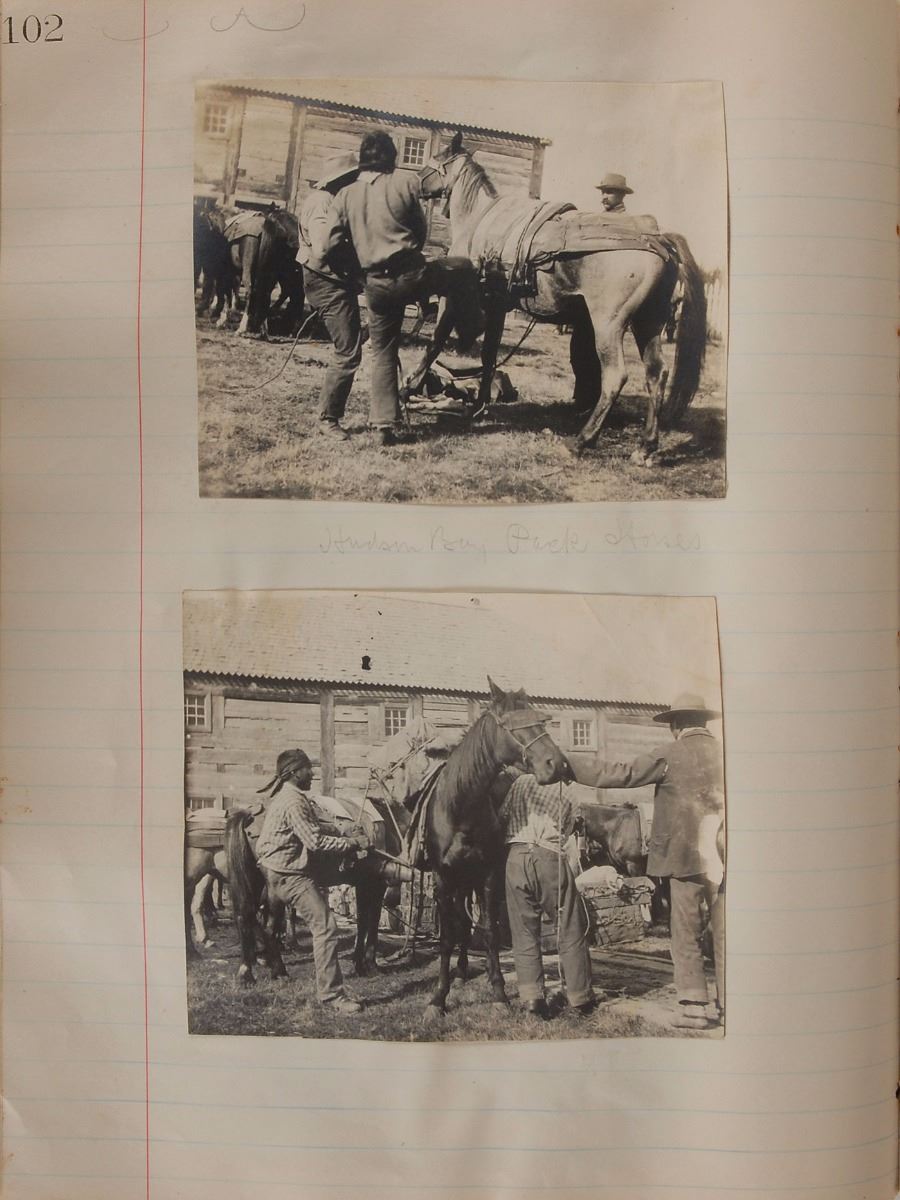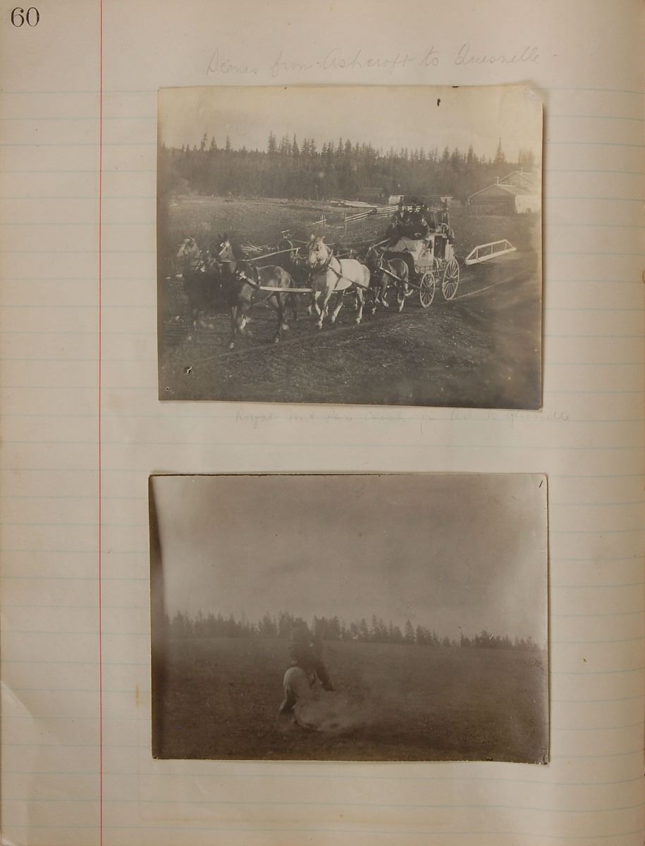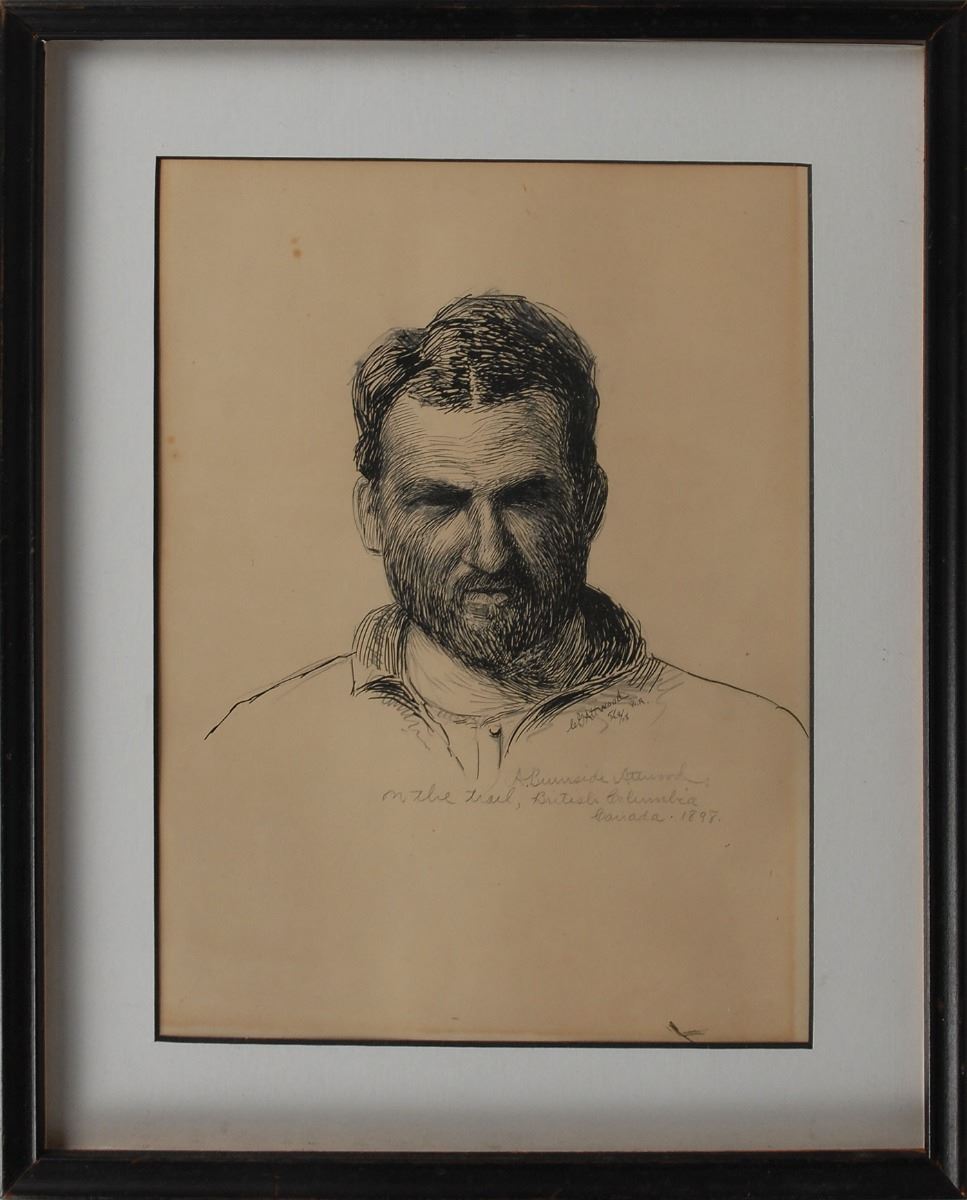 Collection of more than 250 original photos taken by Burnside Attwood while traveling through British Columbia during the Yukon Gold Rush of the late 1890s, affixed within a period 8 x 10 album. A variety of subjects are depicted, including the beautiful natural landscape, native peoples, railroads, camps, trails, animals, and gold mining equipment. Sizes of the photos range from 1.75 x 1.5 to 4.5 x 4; over 160 are the larger size and over 90 are the smaller size. Some of the locations identified are the Fraser River, Stuart Lake, and Fort St. James. Also includes an engraved portrait of Attwood. In overall very good to fine condition.