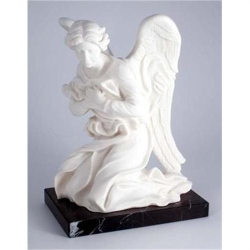 This beautifully detailed angel is hand sculpted in Tuscany of Oxolyte, a material with alabaster similarities. It is in the style of Gian Lorenzo Bernini, one of Italy's master sculptors. The angel is mounted to a .75 thick black marble base. Includes a certificate of guarantee.