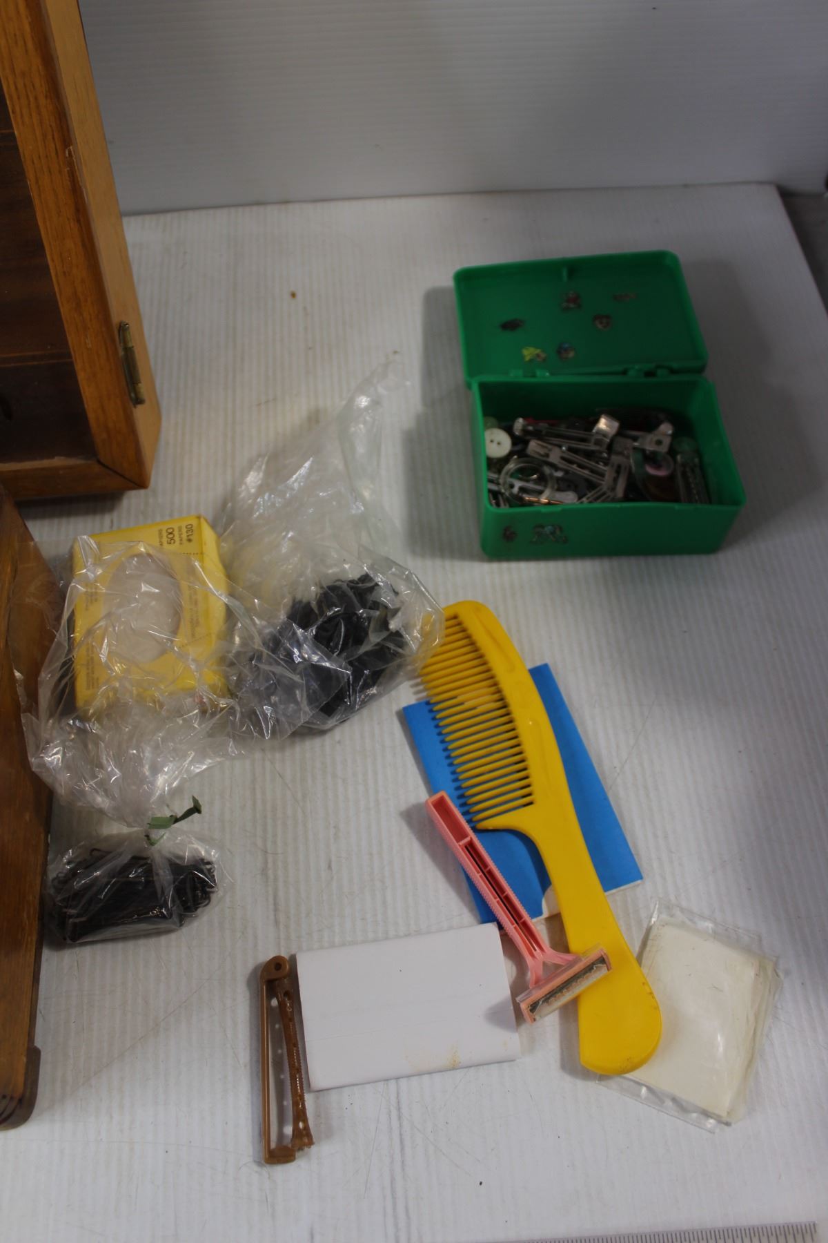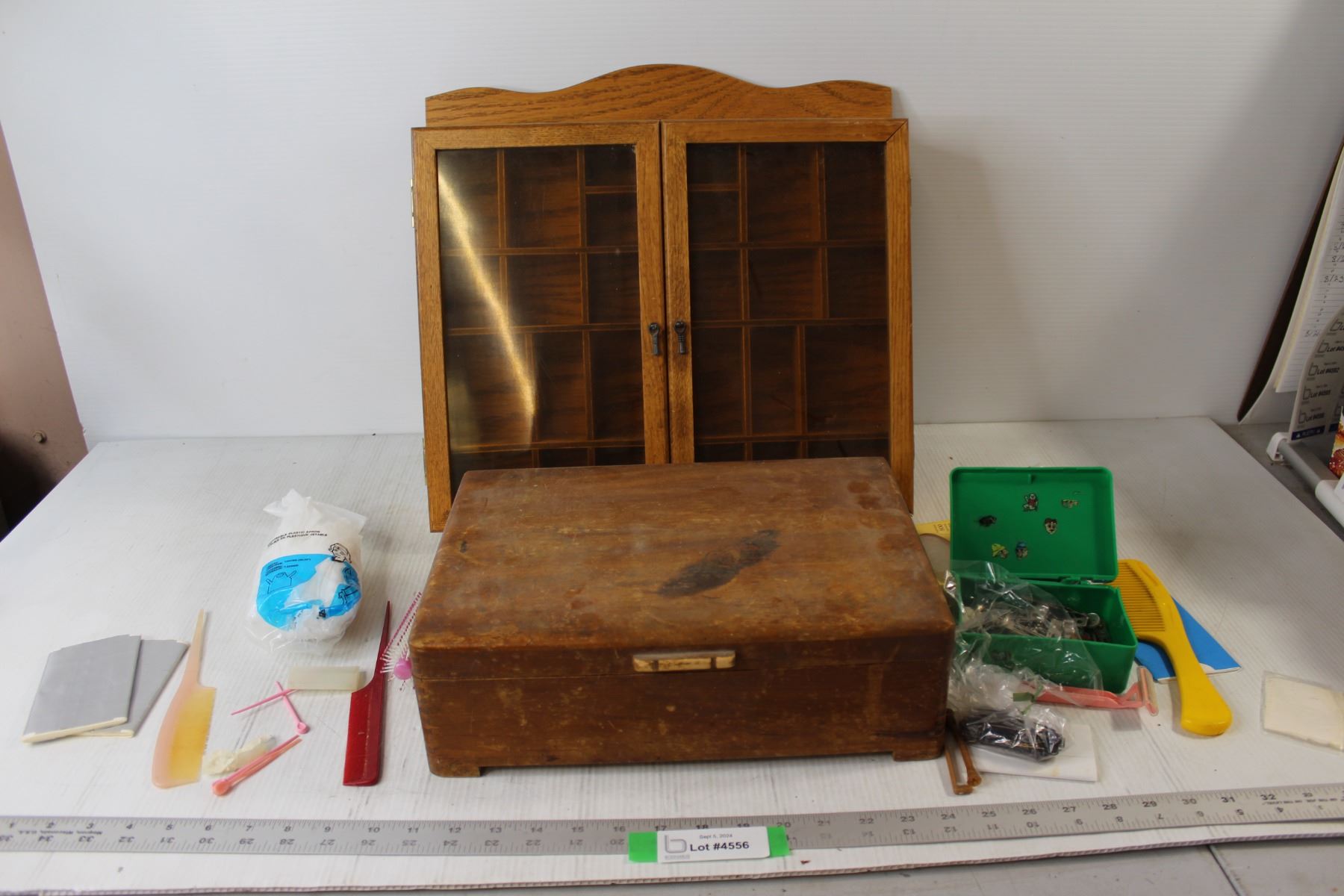 Knick Knacks Display Cabinet, Storage Box With Mirror, Assorted Combs/Brushes, Misc.