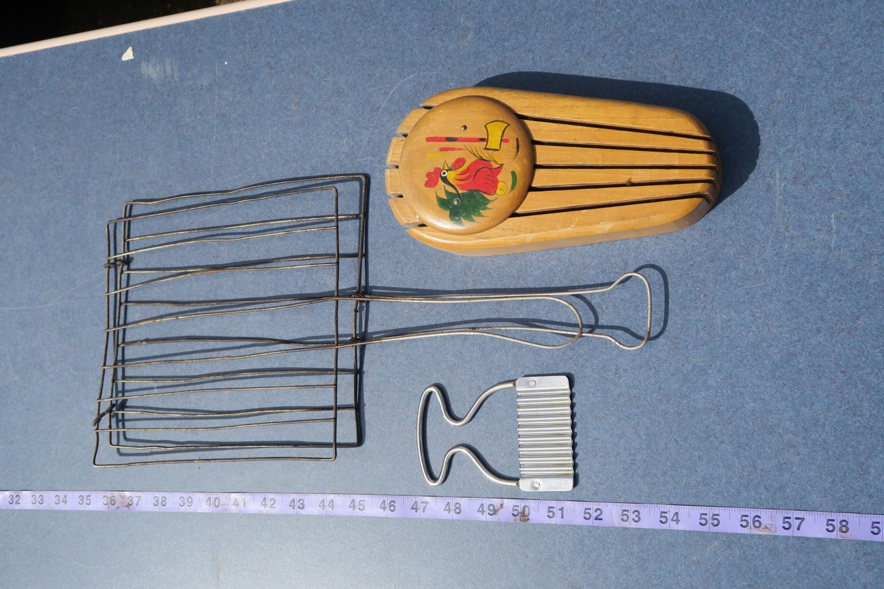 Knife Rack, Cheese Slicer & Vintage Toaster Grill