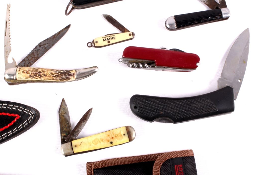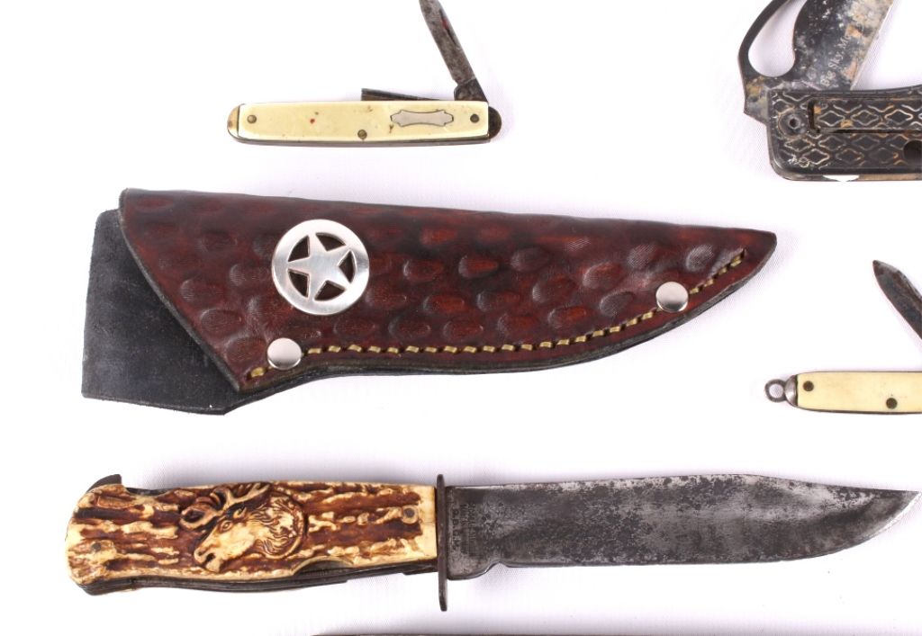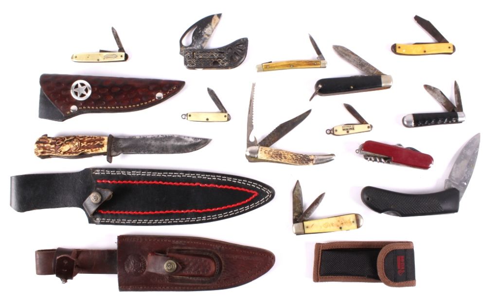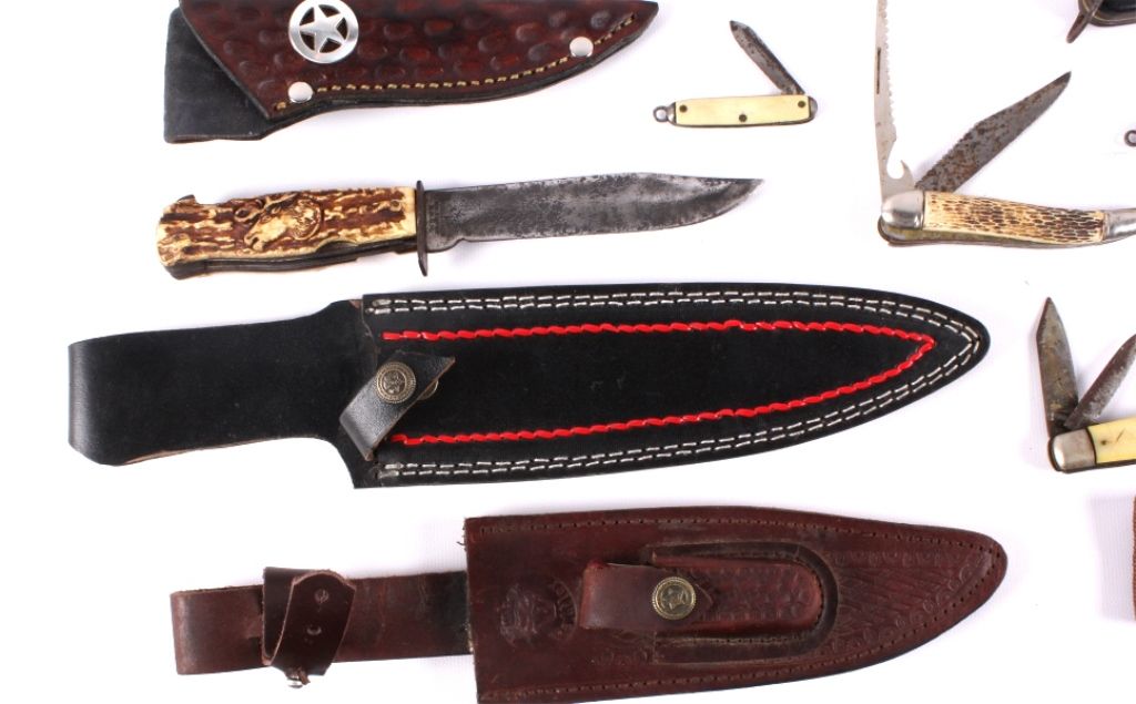 This lot includes a collection of several knives and scabbards. There are 13 knives and 4 scabbards. They are all in good condition.