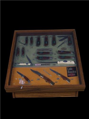 Knife display in showcase all items still there neat display item