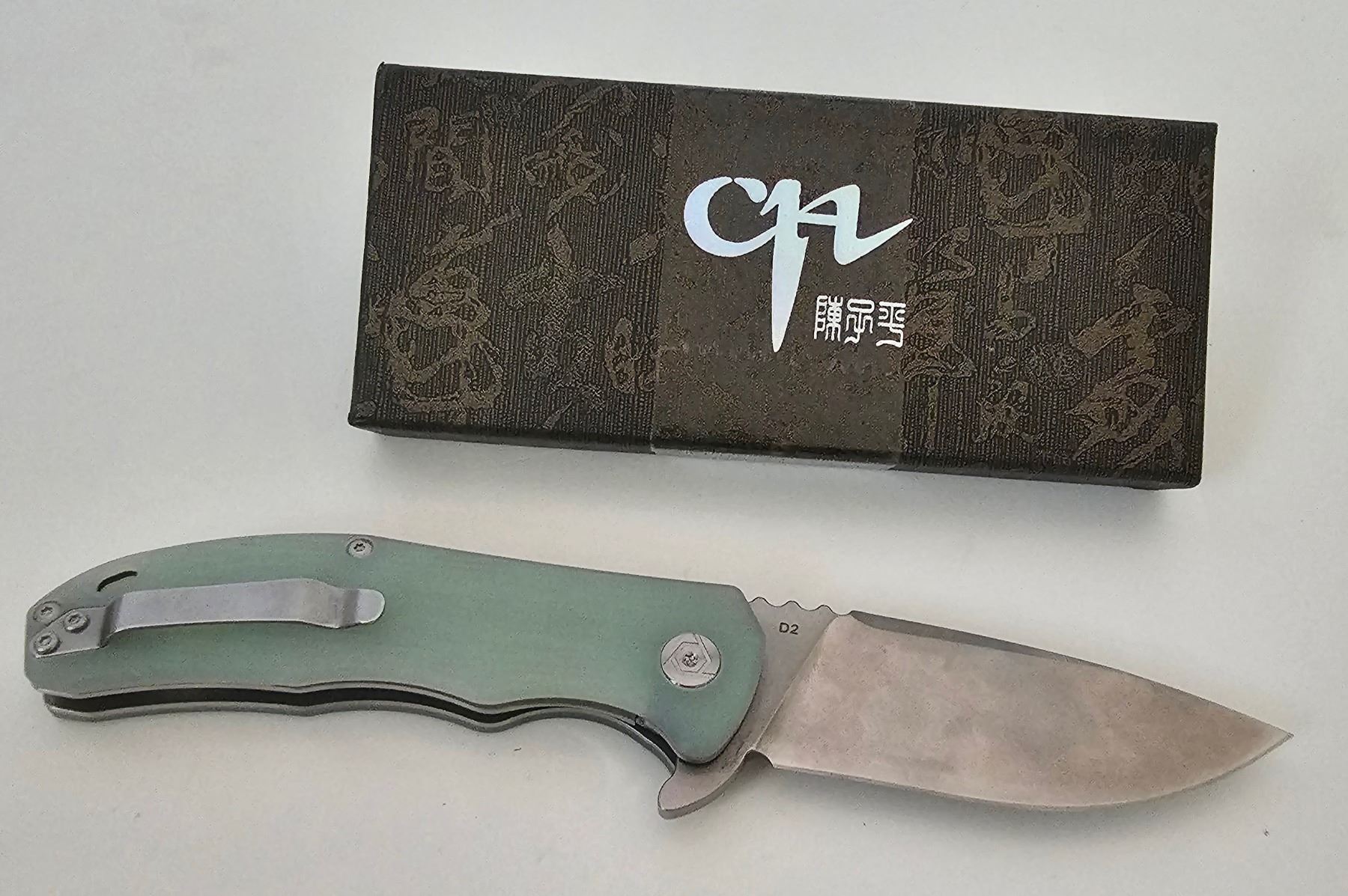 Cia, Outdoor Pocket Knife, 5.75 In. D2 Steel Blade Folding Knife, (Jade) Shelf Pull, New Condition