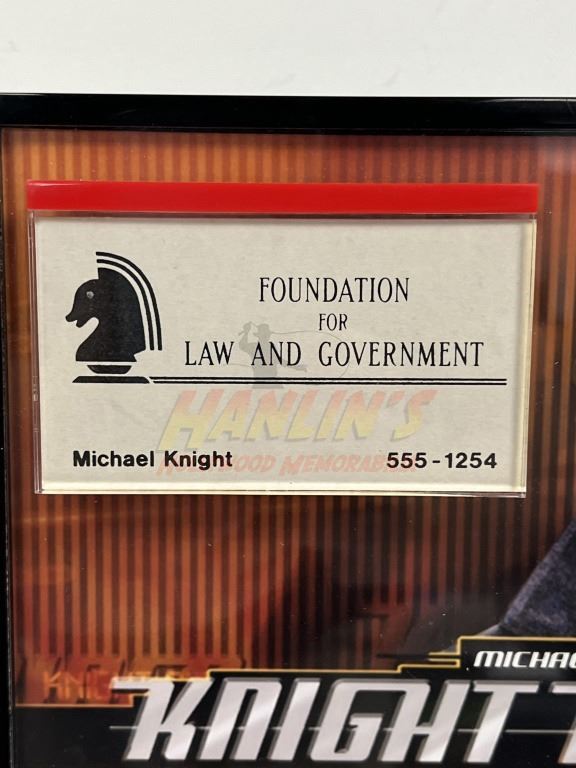 Original Knight business card in a custom made display from the action crime television series 'Knight Rider' (1982 1986), created and produced by Glen A. Larson.