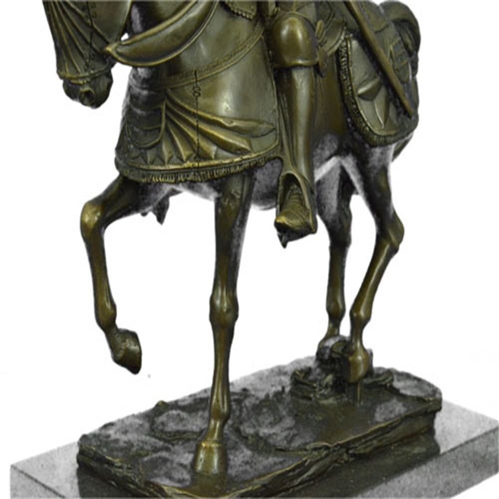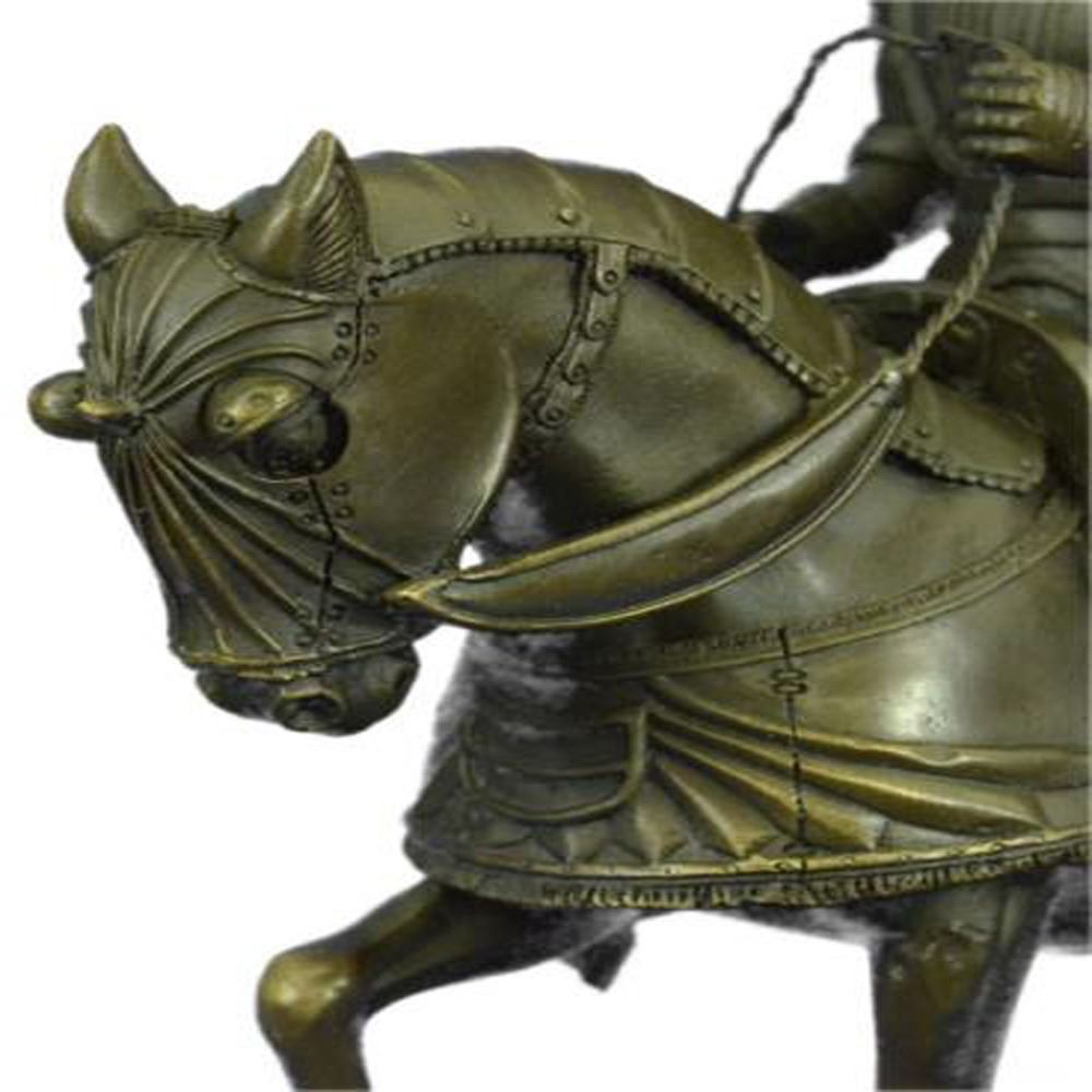 Ladies, have you always dreamed of having a Knight in Shining Armor sweep you off of your feet? Gentlemen, do you long for adventure and wish that you were battling fire breathing dragons rather than the rats in today race? This impressive Knight Bronze Sculpture may not transport you into another time and place, but it is a beautiful reminder of just such dreams. Dimensions: Height 13 X Width 10 inches. Weight: 12 LBS.